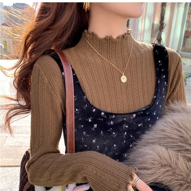 하프 터틀넥 스웨터 바닥 이너 탑 슬림 초가을과 겨울 2024 새로운 여성 패션 봄스토어 가기