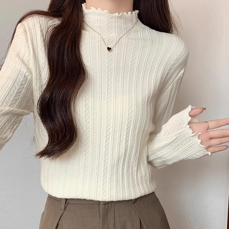 하프 터틀넥 스웨터 바닥 이너 탑 슬림 초가을과 겨울 2024 새로운 여성 패션 봄