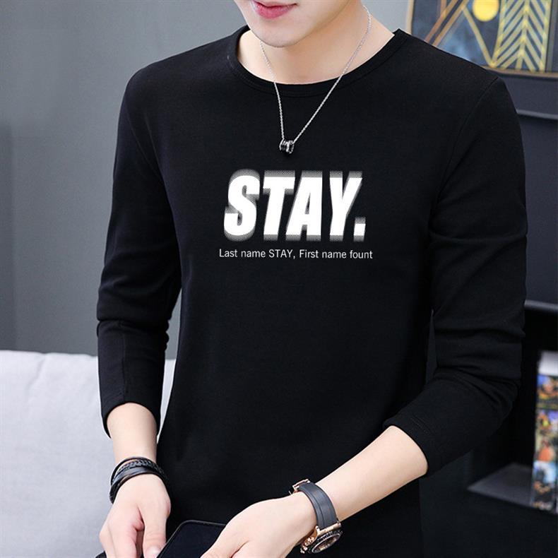 가을 새로운 긴 소매 티셔츠 남성용 가을 새로운 얇은 한국 스타일 슬림 핏 세련된 인쇄 재고 탑 옷스토어 가기