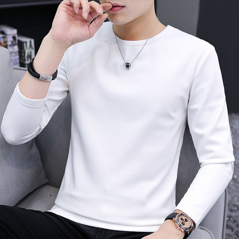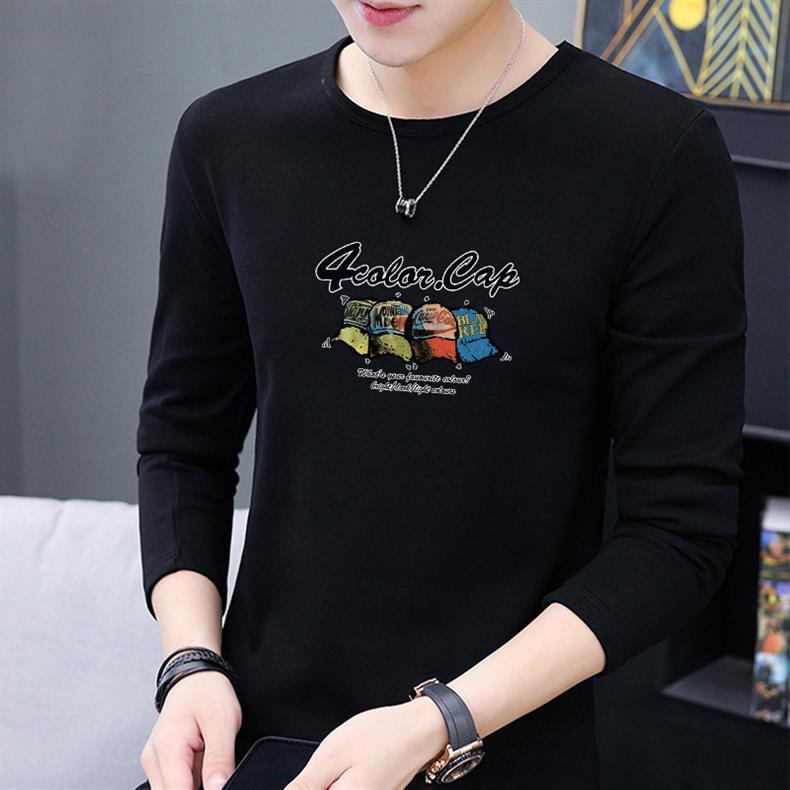 가을 새로운 긴 소매 티셔츠 남성용 가을 새로운 얇은 한국 스타일 슬림 핏 세련된 인쇄 재고 탑 옷