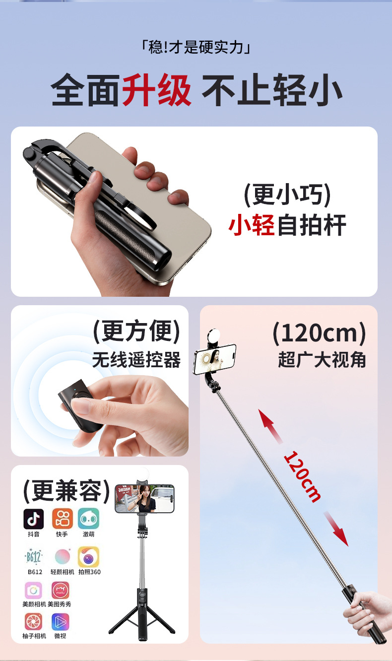 새로운 1.15 m 셀카 스틱 Z125s 트레몰로 라이브 사진 삼각대 브래킷 통합 텔레스코픽