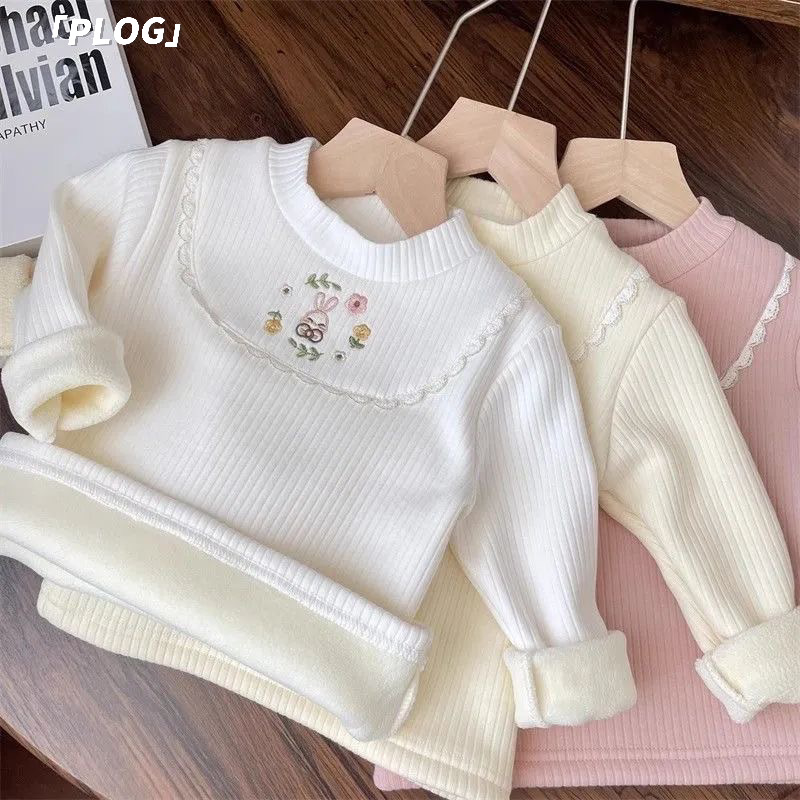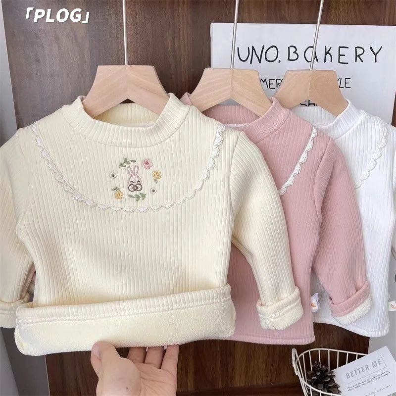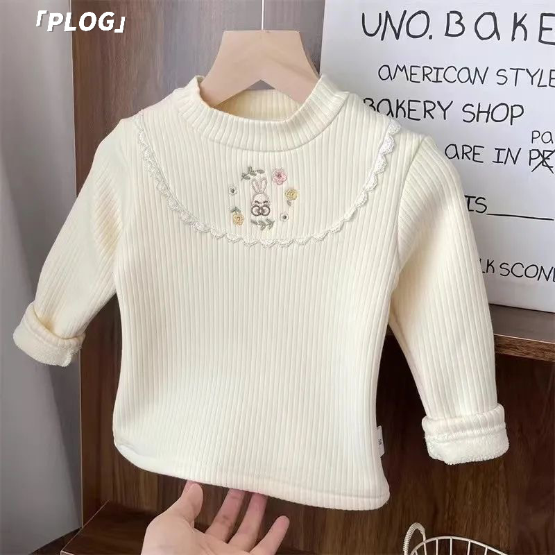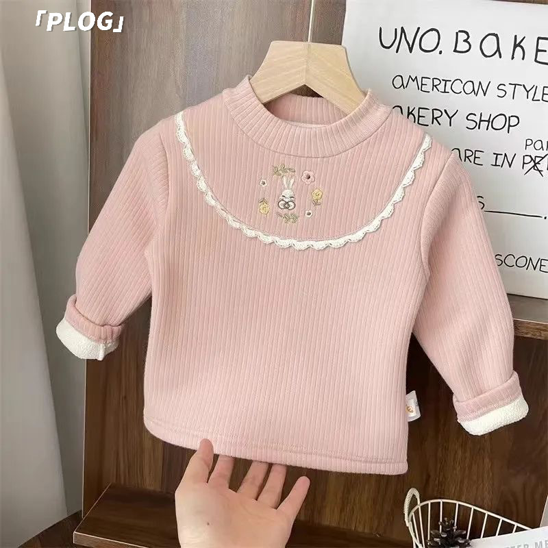 소녀들의 가을과 겨울 기모 두꺼운 따뜻한 탑 티셔츠 소녀 원피스 벨벳베이스 셔츠 어린이 아기의 내부 공주