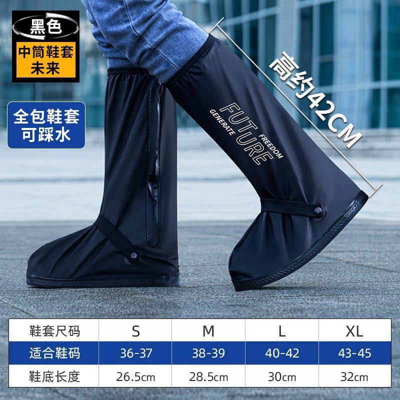 • 퓨처 블랙 - 미드튜브 슈즈 커버 (높이 약 42CM) [방수층은 물을 밟을 수 있음 + 발을 완전히 덮음]