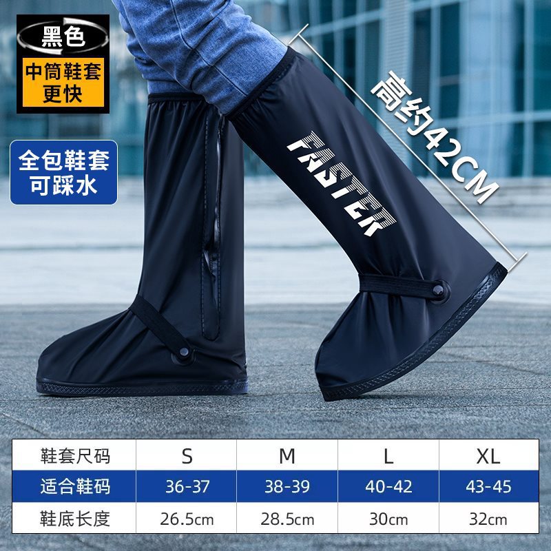 • 블랙을 믿으세요 - 종아리 중간 신발 커버 (높이 약 42CM) [방수층은 물을 밟을 수 있음 + 발을 완전히 덮음]