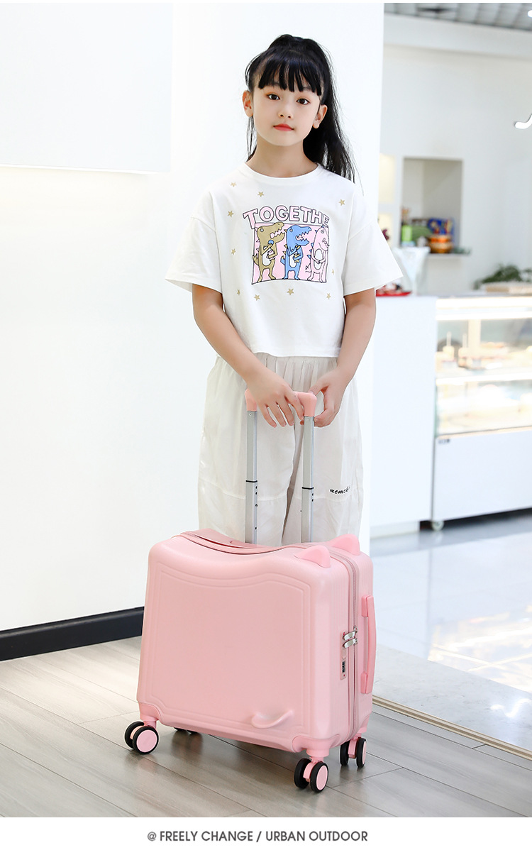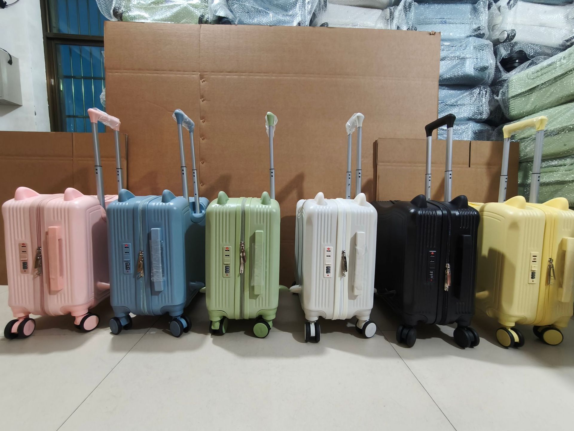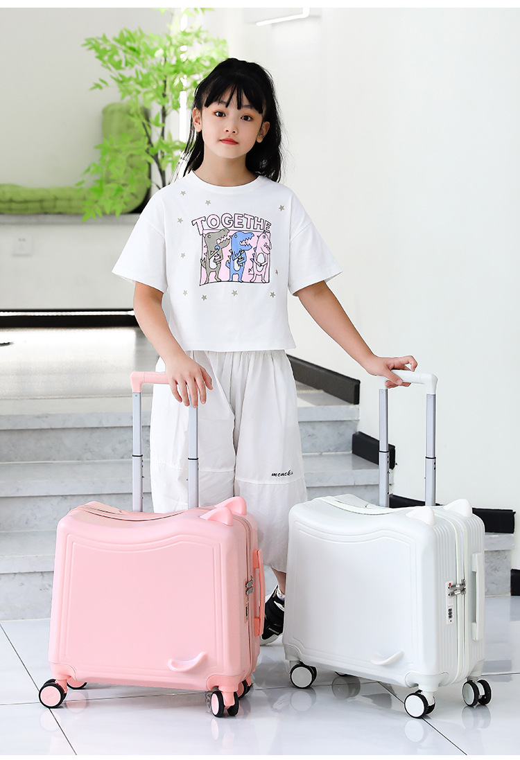 20 인치 트롤리 케이스 고양이 귀 발 페달 어린이 가방 수하물 장착 유니섹스 어린이 비밀번호 수하물스토어 가기