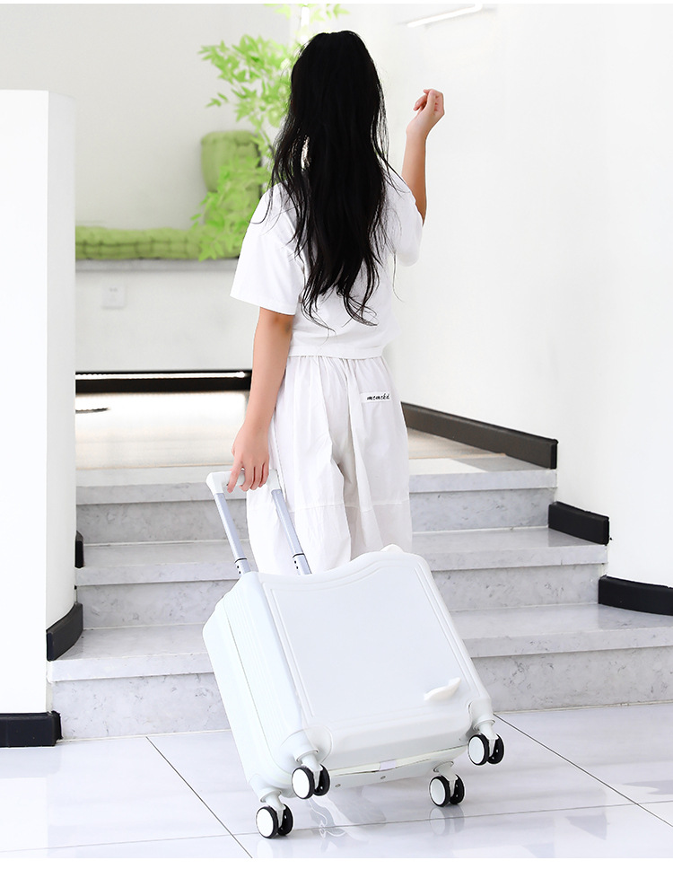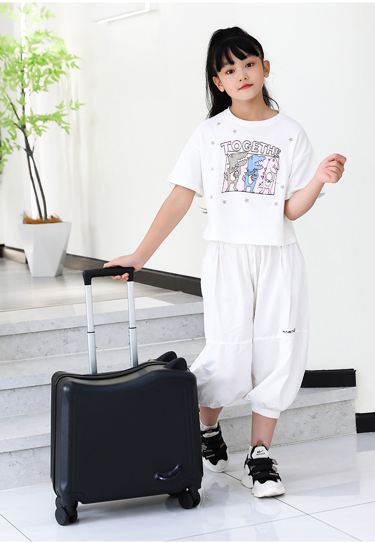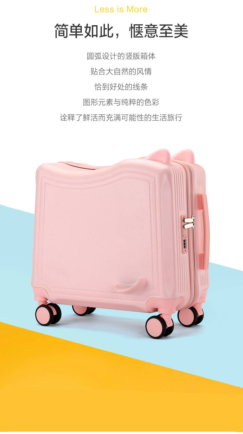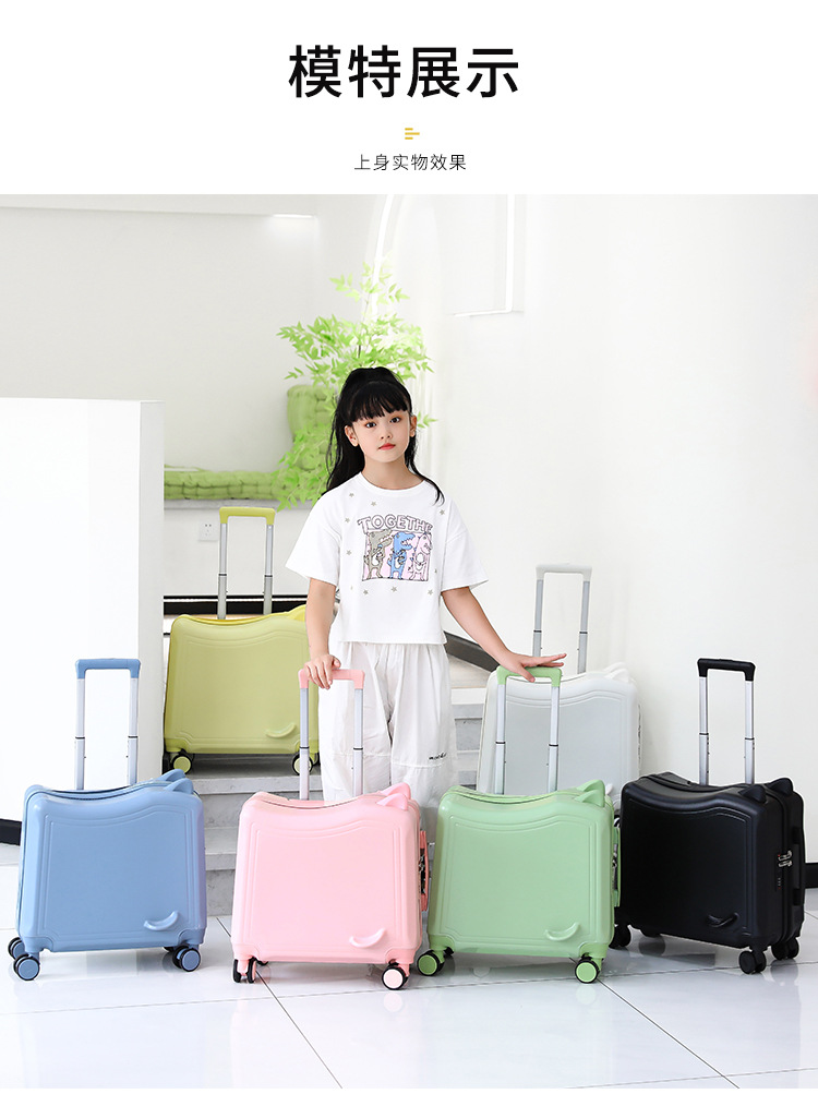 20 인치 트롤리 케이스 고양이 귀 발 페달 어린이 가방 수하물 장착 유니섹스 어린이 비밀번호 수하물스토어 가기