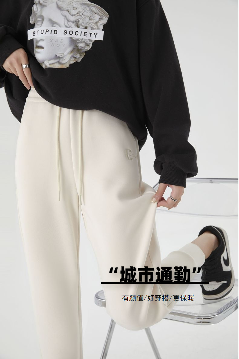 [무시 벨벳 방풍 바지] 겨울 여자 새 700g 양면 무시 벨벳 스포츠 남녀 캐주얼 욕실 바지