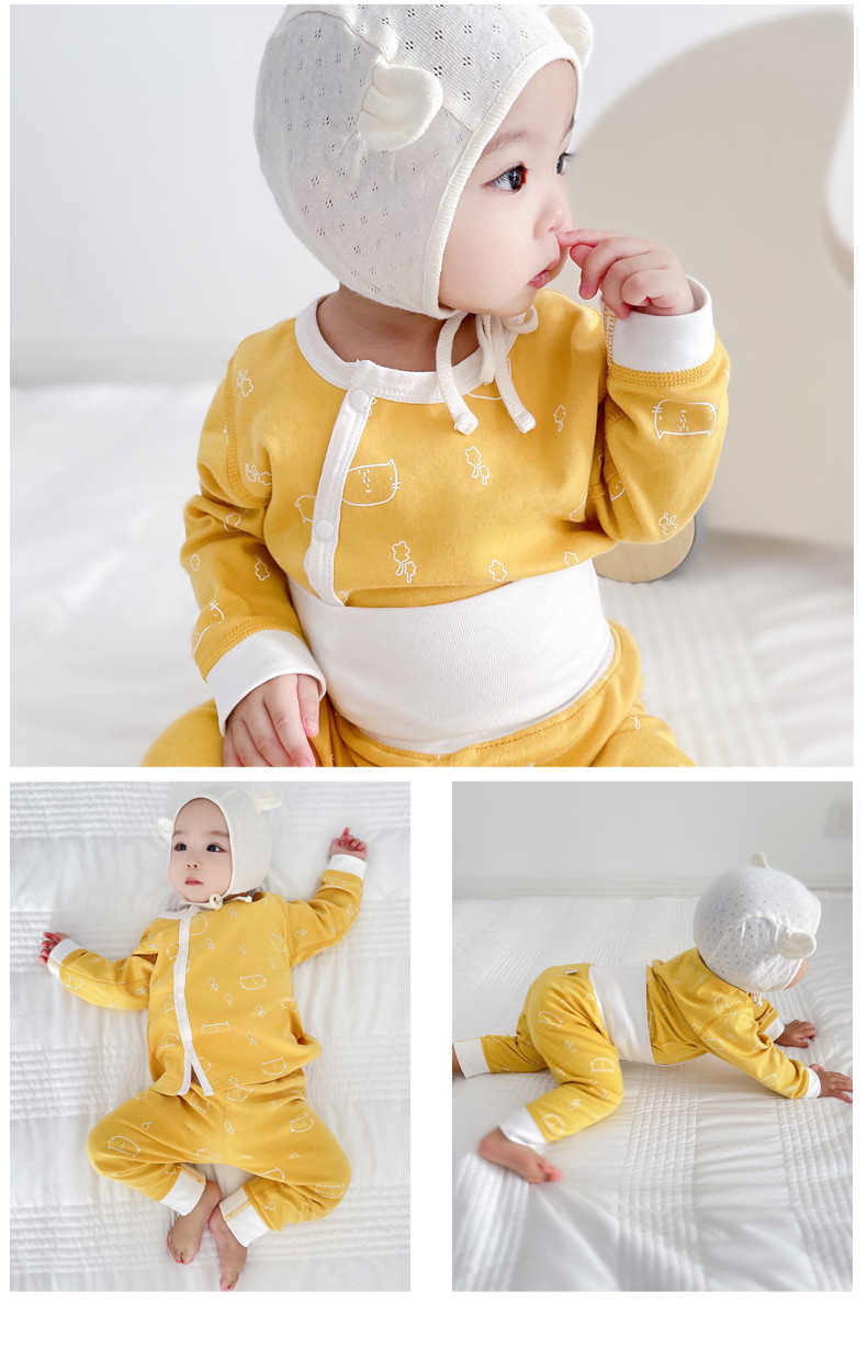아기 슬리핑 옷 아기의 가을 옷과 바지가 세트 어린 아이들의 높은 허리 배꼽 보호 난방실 속옷 가을과 겨울 옷스토어 가기