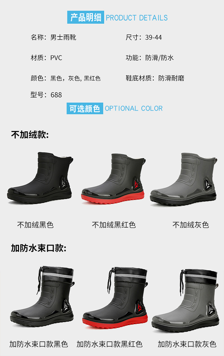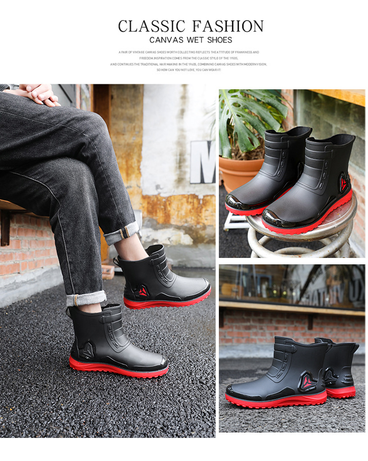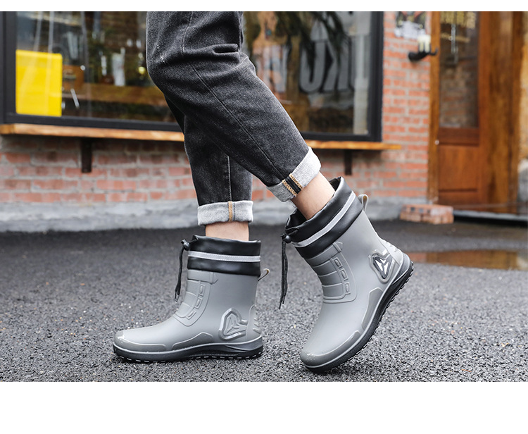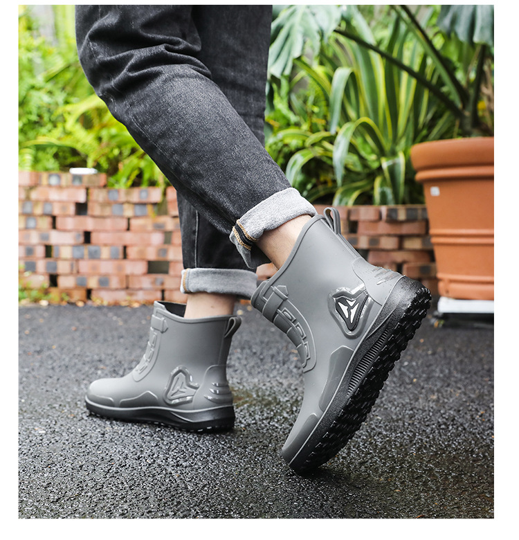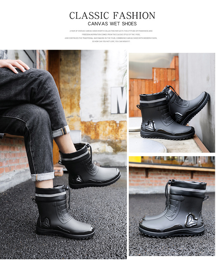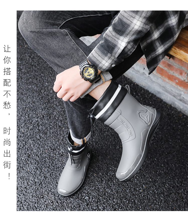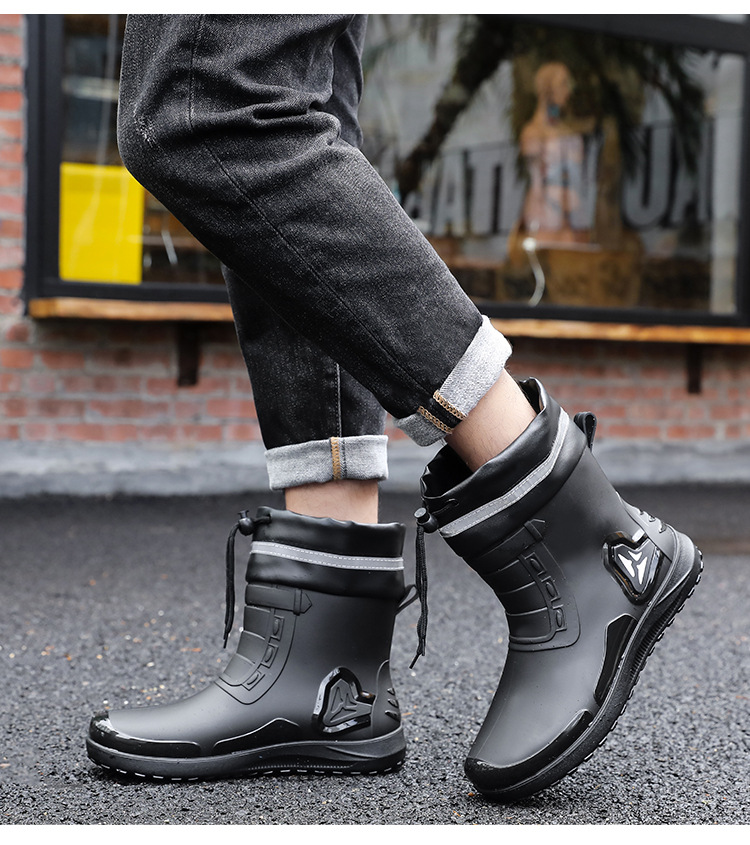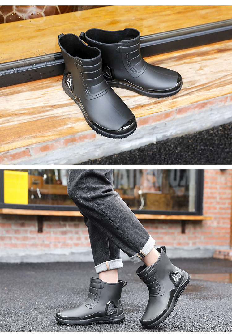 비 부츠 남성 패션 짧은 튜브 방수 코르셋 장화 비 슬립 내마모성 고무 신발 야외 낚시 신발 세차 작업 신발스토어 가기
