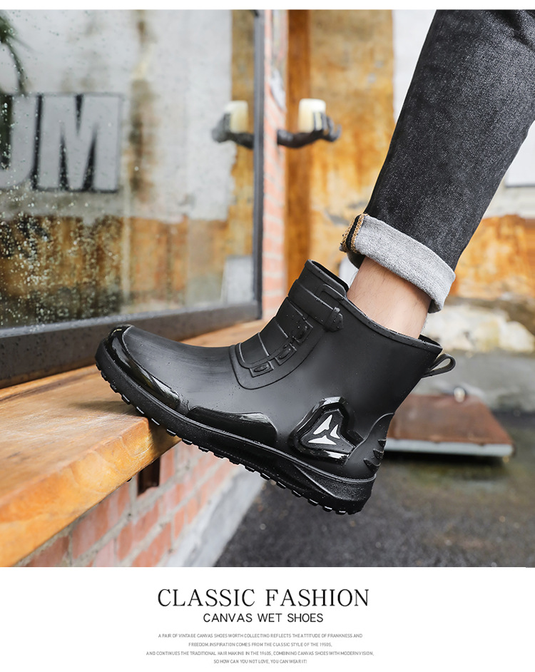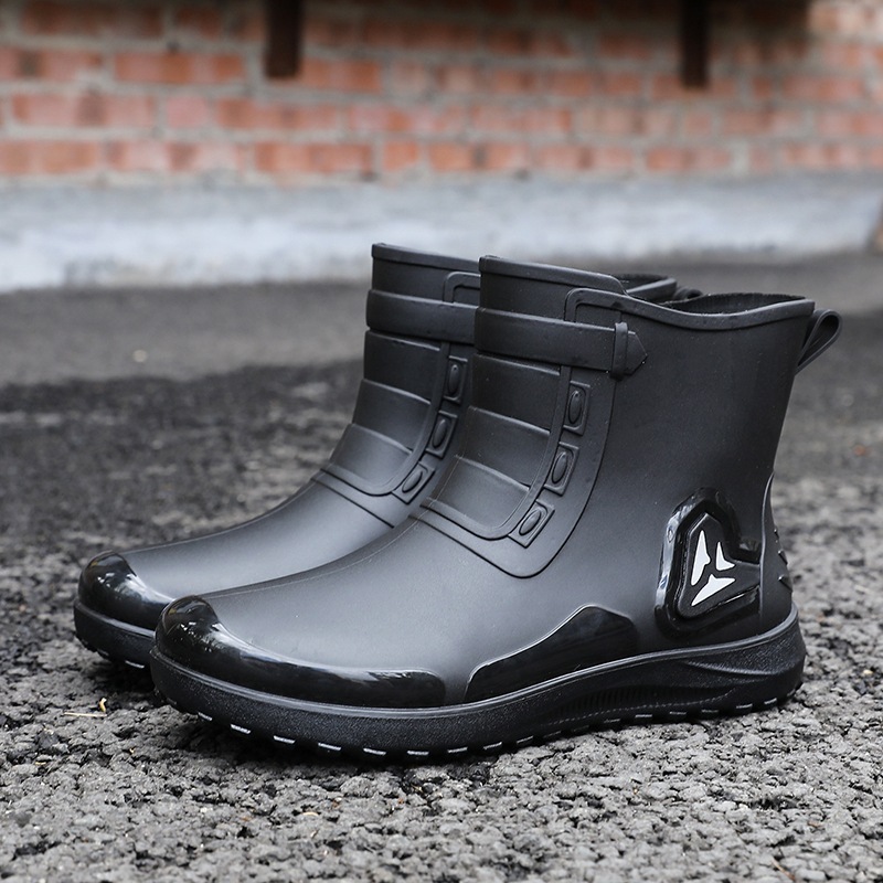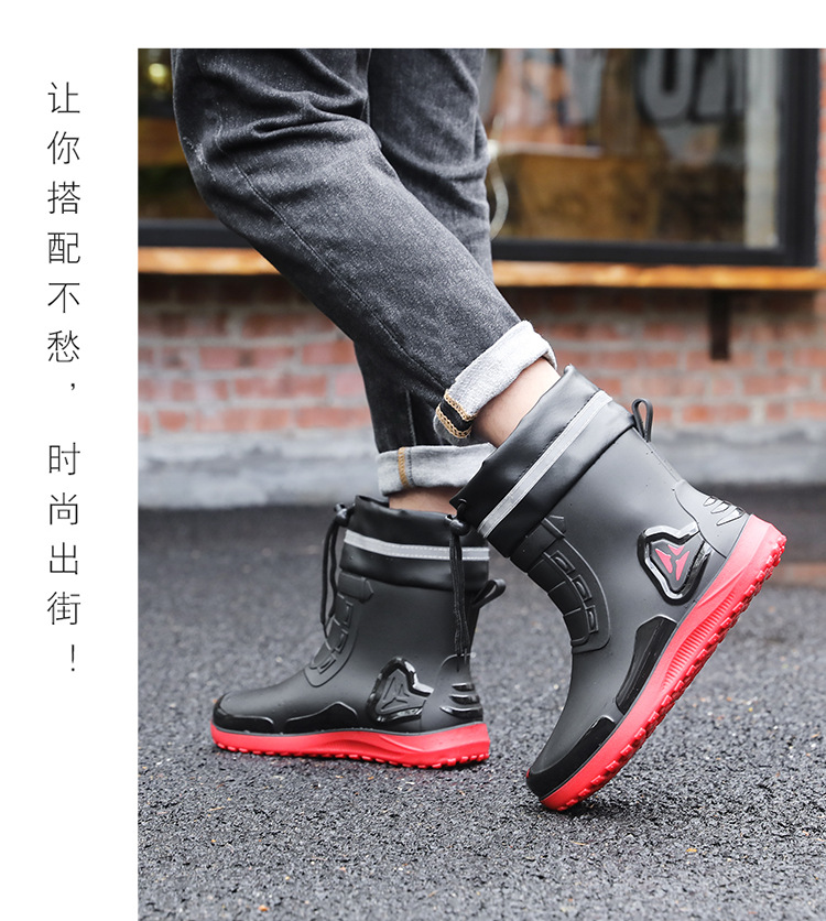 비 부츠 남성 패션 짧은 튜브 방수 코르셋 장화 비 슬립 내마모성 고무 신발 야외 낚시 신발 세차 작업 신발