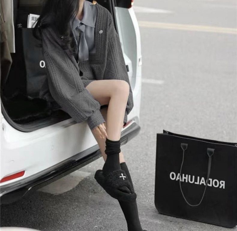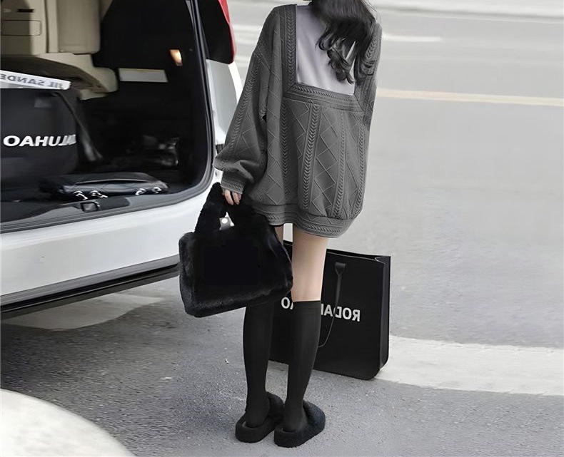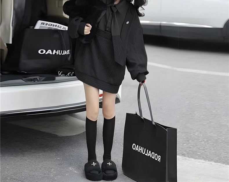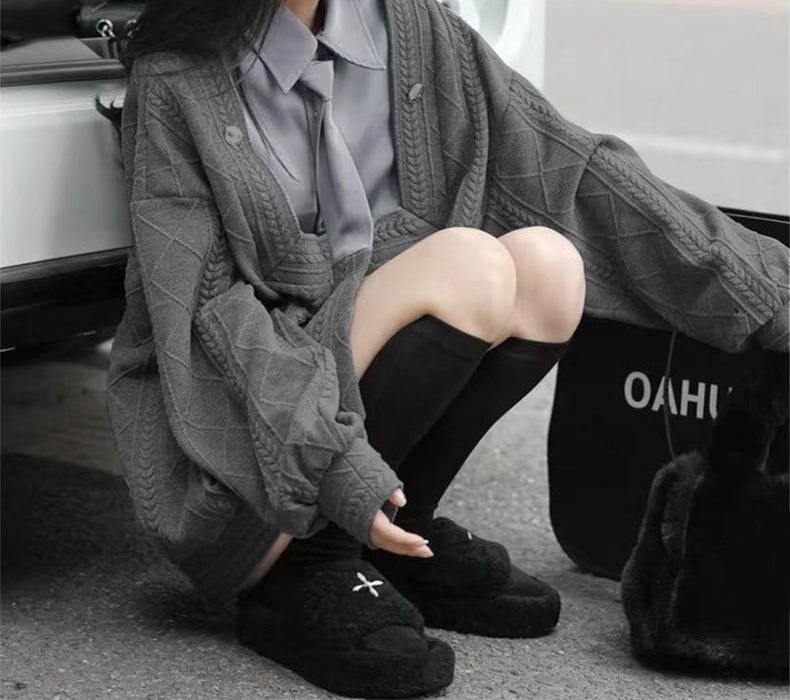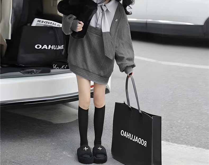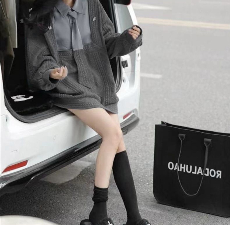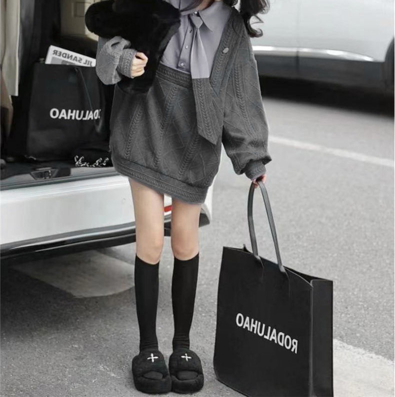 가짜 투피스 그레이 게으른 스타일 땀 여성의 가을과 겨울 2024 외부 착용 디자인을위한 새로운 POLO 칼라 타이 탑 센스 트렌디스토어 가기