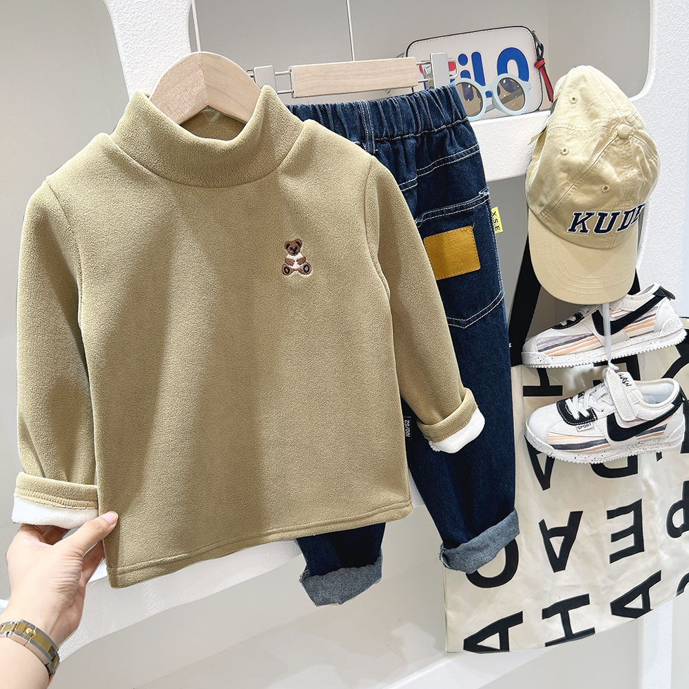 소년 아동복 2024 가을과 겨울 새로운 아동베이스 셔츠 큰 어린이 아기 만화 단색 기본 셔츠