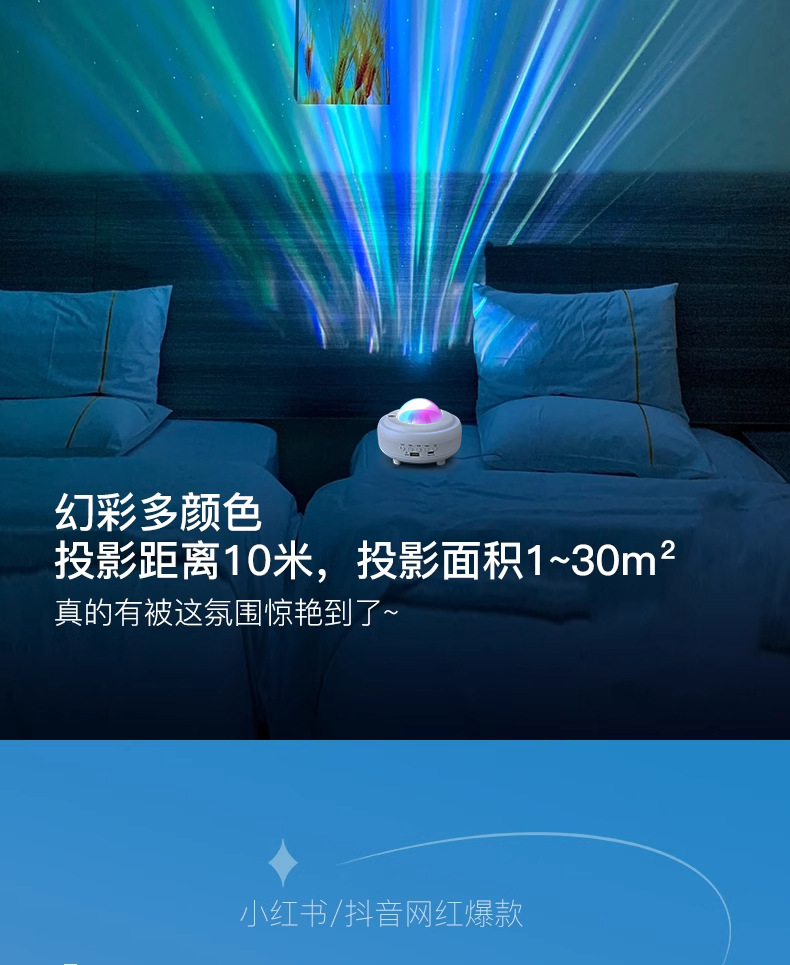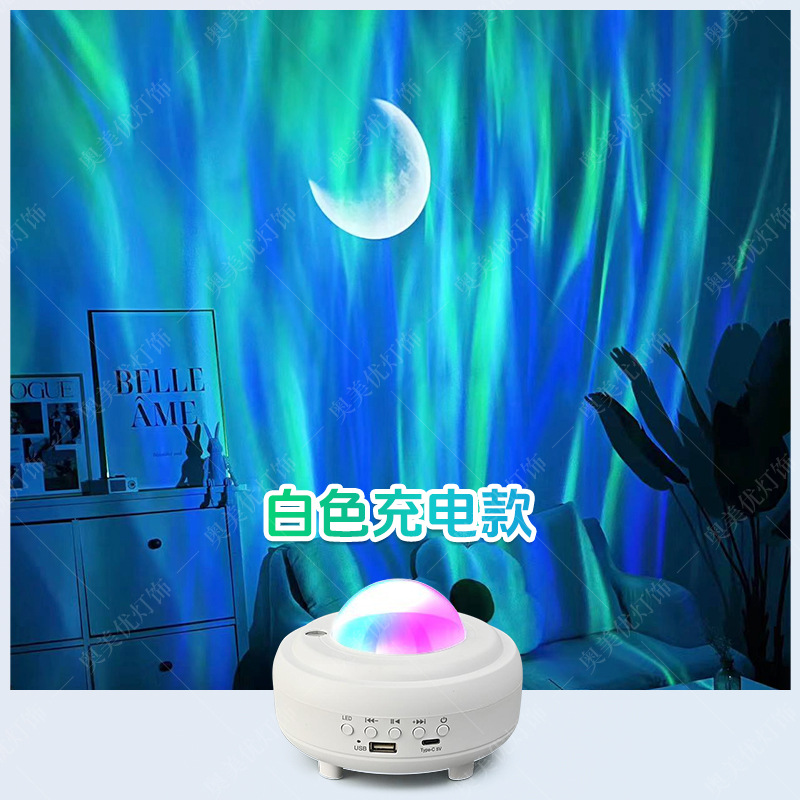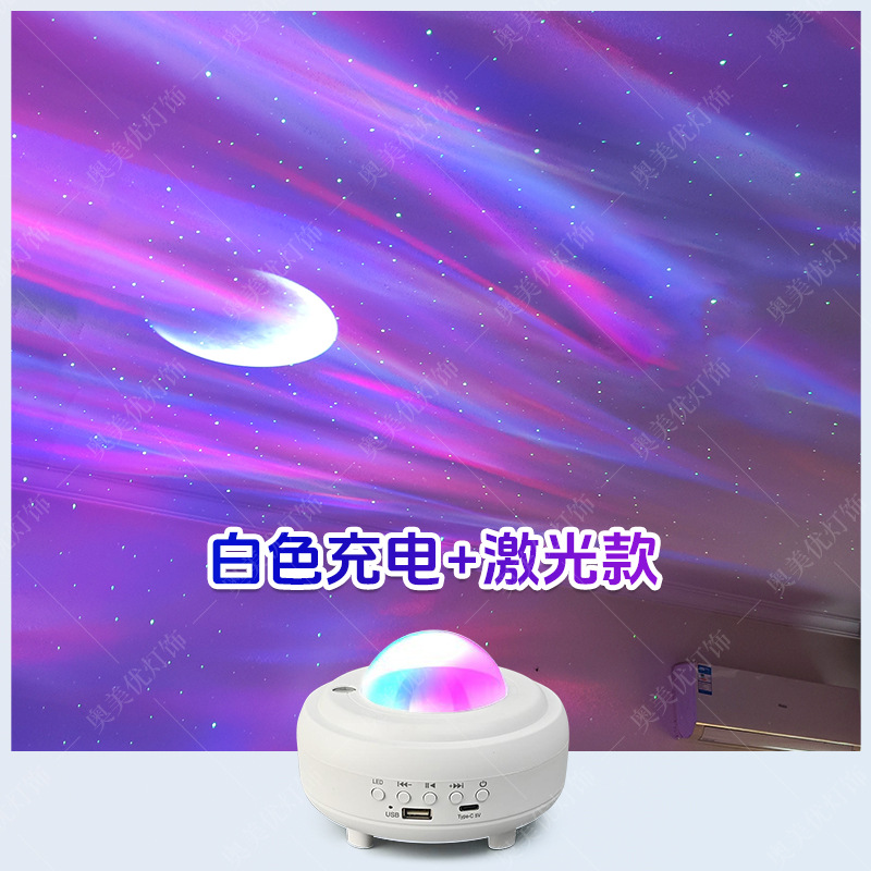 • 고급(충전식) 백색 오로라 프로젝터 램프 [레이저 포함] 블루투스 스피커