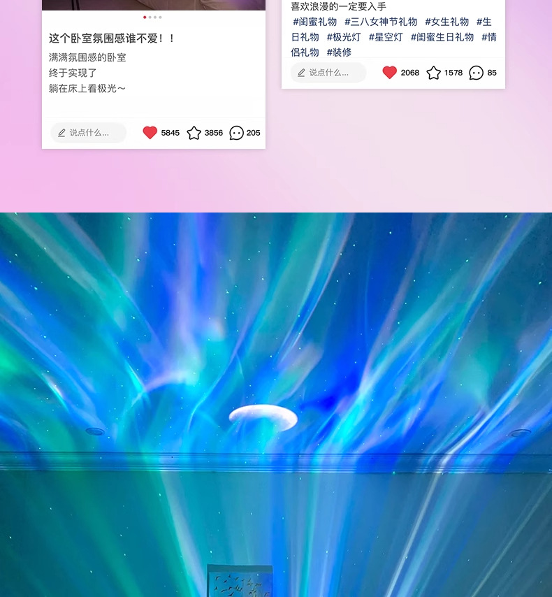 그물 붉은 북부 조명 별이 빛나는 하늘 프로젝터 나이트 라이트 별빛 분위기 감정적 인 생일 선물 전용 국경