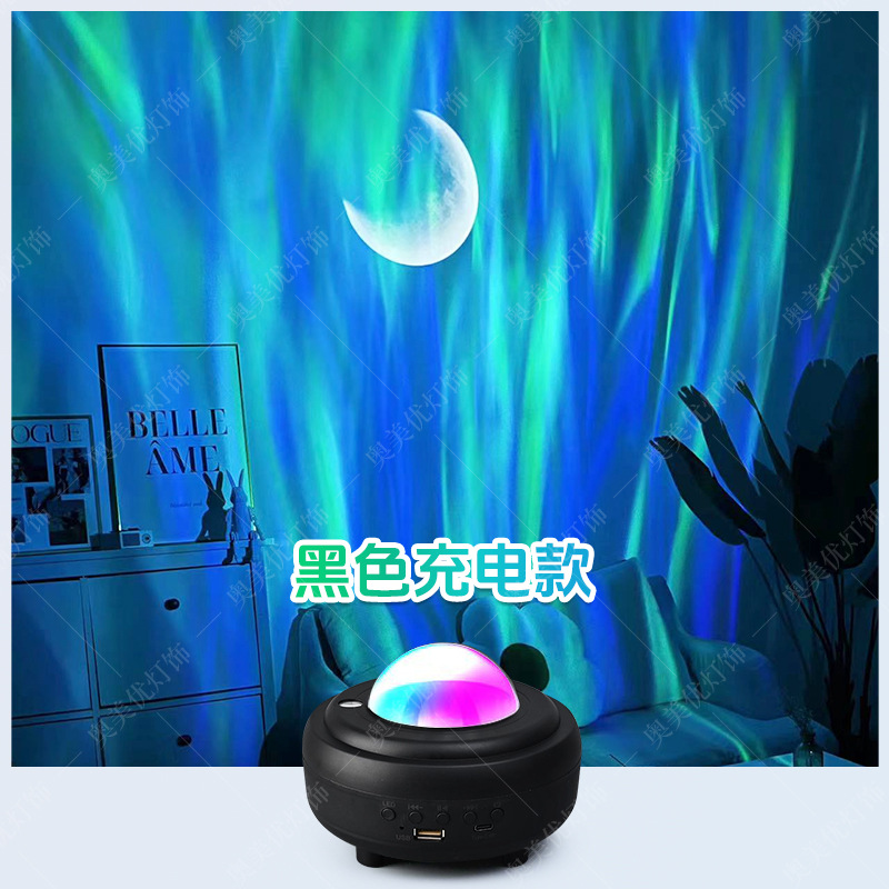 • 고급(충전식) 블랙 오로라 프로젝터 램프 [레이저 포함] 블루투스 스피커
