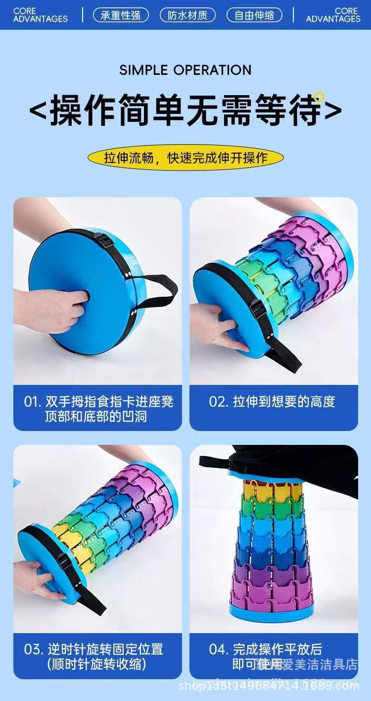 야외 텔레스코픽 두꺼운 접이식 의자 휴대용 여행 조절 의자 캠핑 대기열 낚시 수축 플라스틱 의자스토어 가기