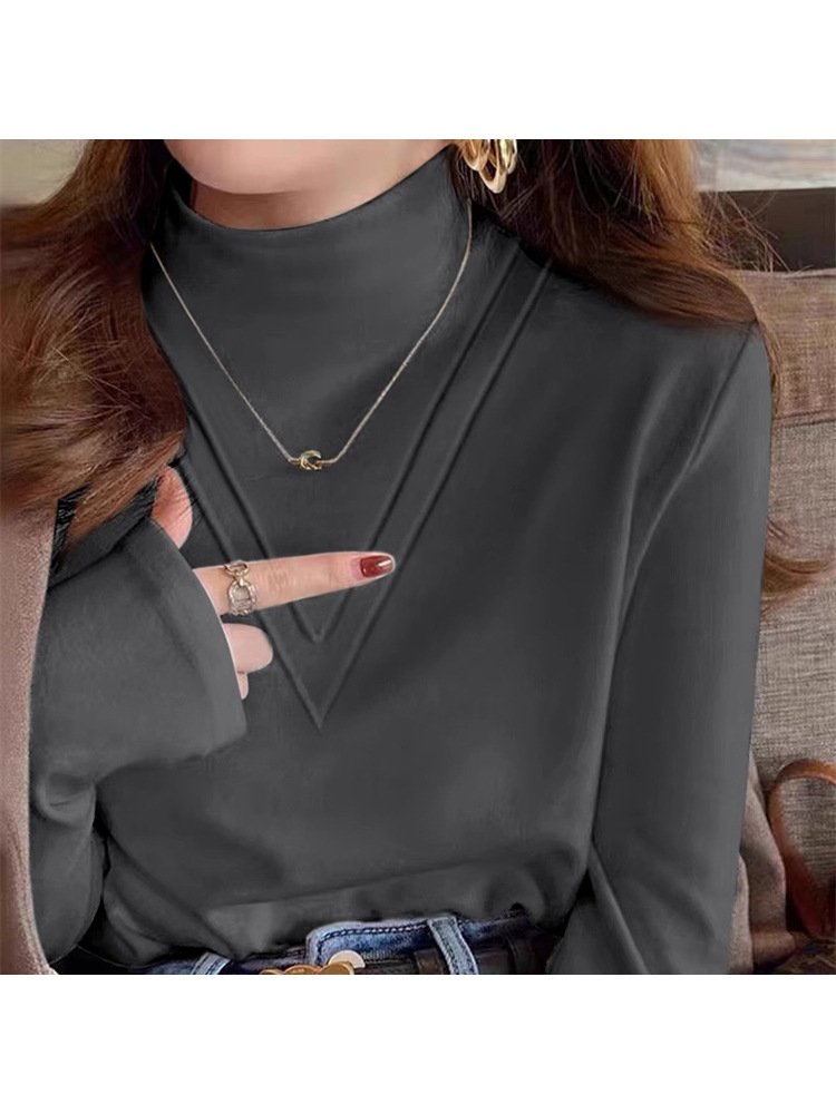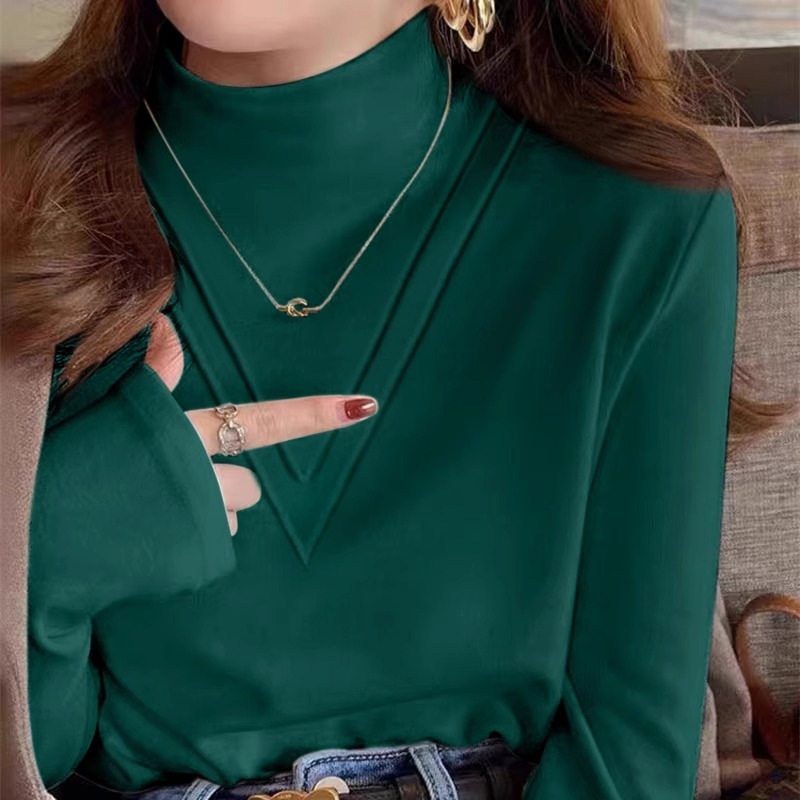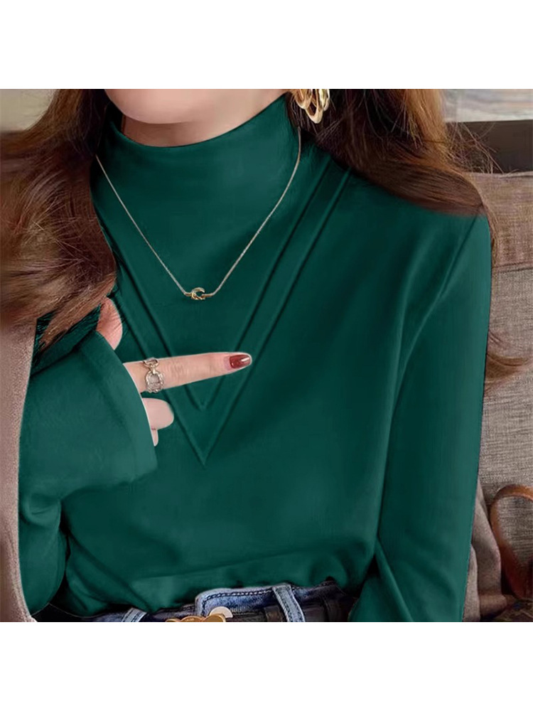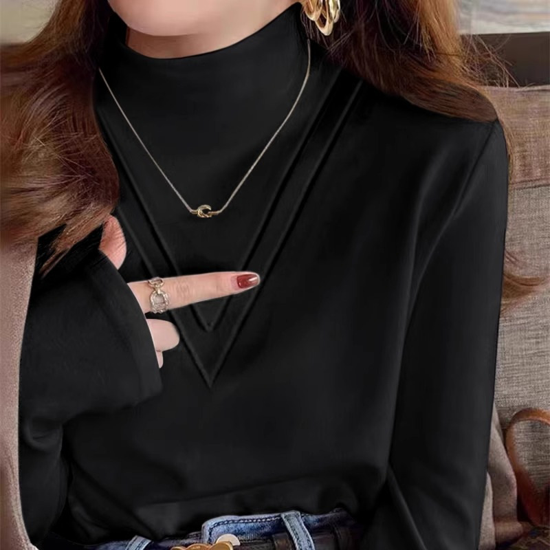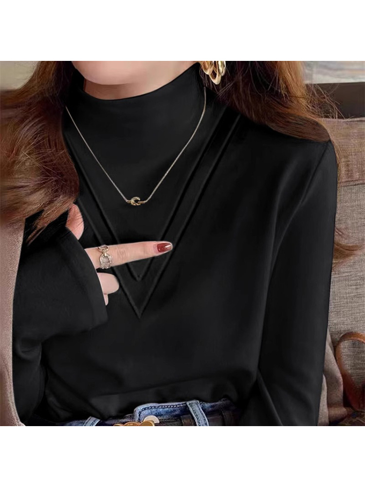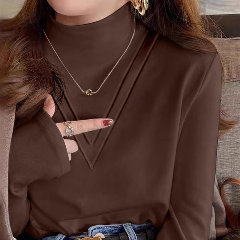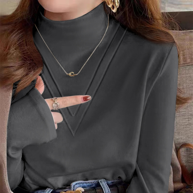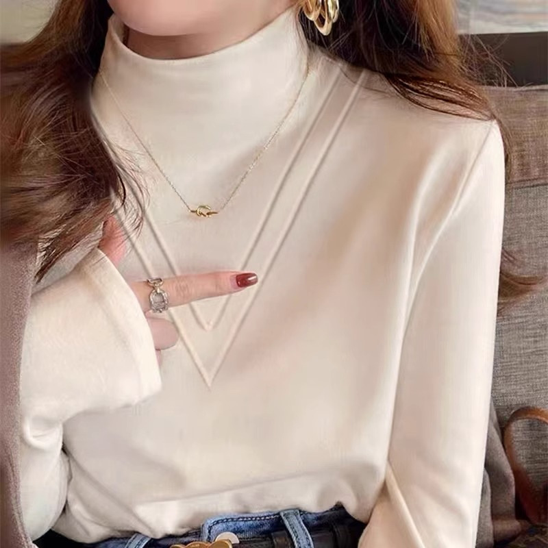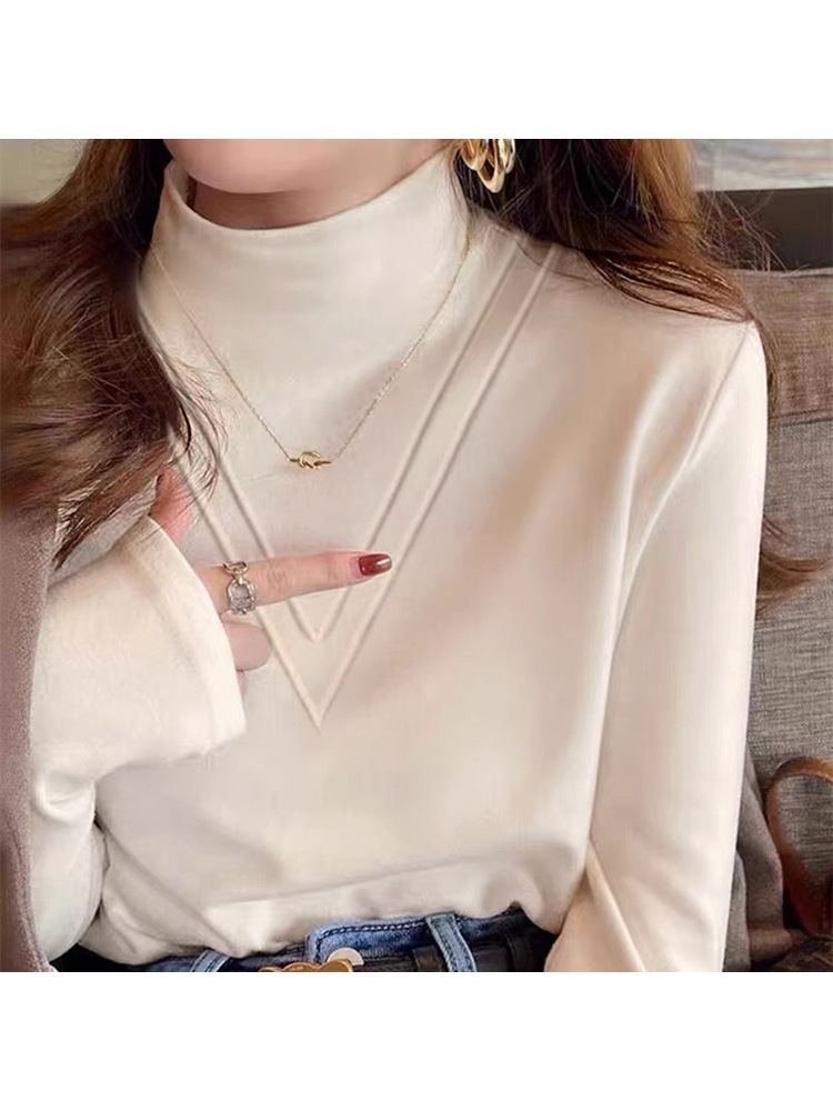 반 높이 칼라 솔리드 컬러 슬림핏 올매치 베이스 셔츠 2024 겨울 뉴 벨벳 따뜻한 내부 긴팔 탑
