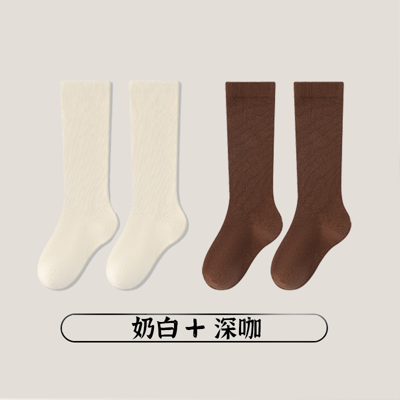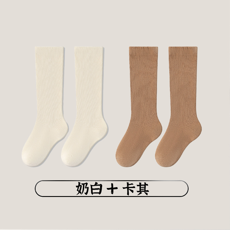 어린이 양말 가을 클래스 A 면 송아지 양말 높은 탄성 여자 한국 단색 대학 스타일 JK 긴 튜브 유행 양말