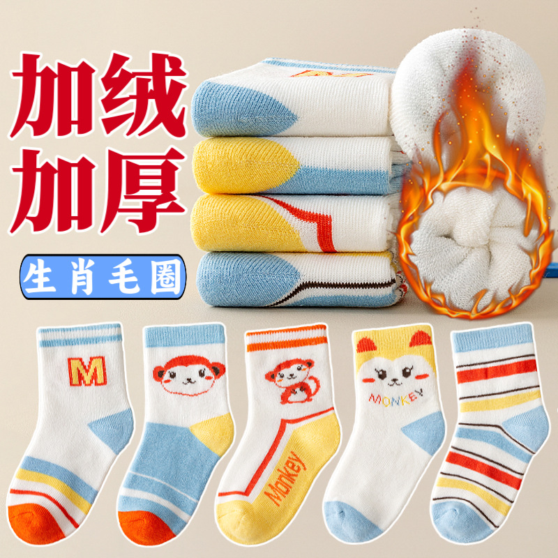 국경 간 어린이 테리 양말 가을과 겨울 기모 두꺼운 튜브 양말 따뜻한 수건 양말 겨울 튜브 바닥 양말