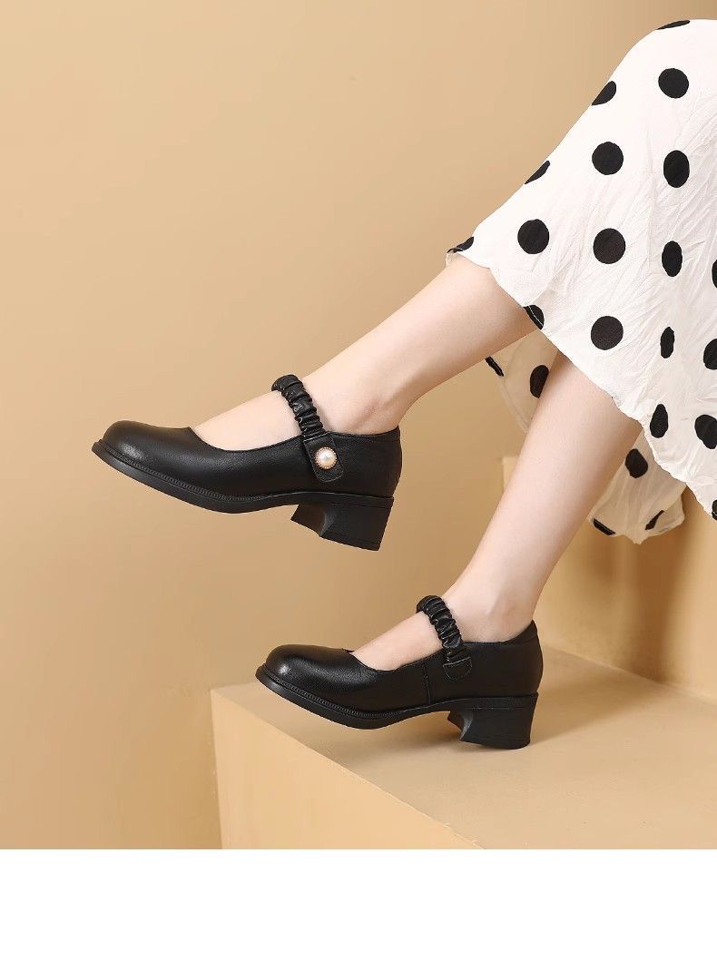 피곤하지 않은 발 메리 제인 여성 신발 2024 새로운 봄 부드러운 가죽 부드러운 밑바닥 단일 레이어 신발 스커트 두꺼운 힐 작은 가죽 신발 싱글 레이어 신발스토어 가기