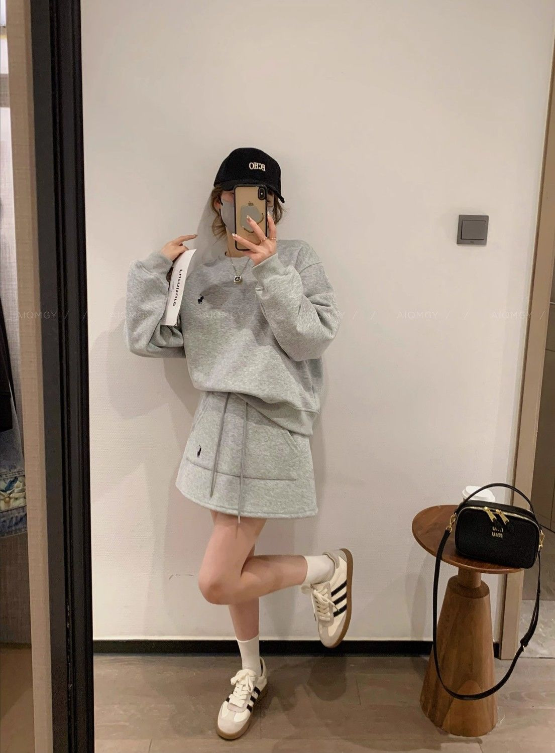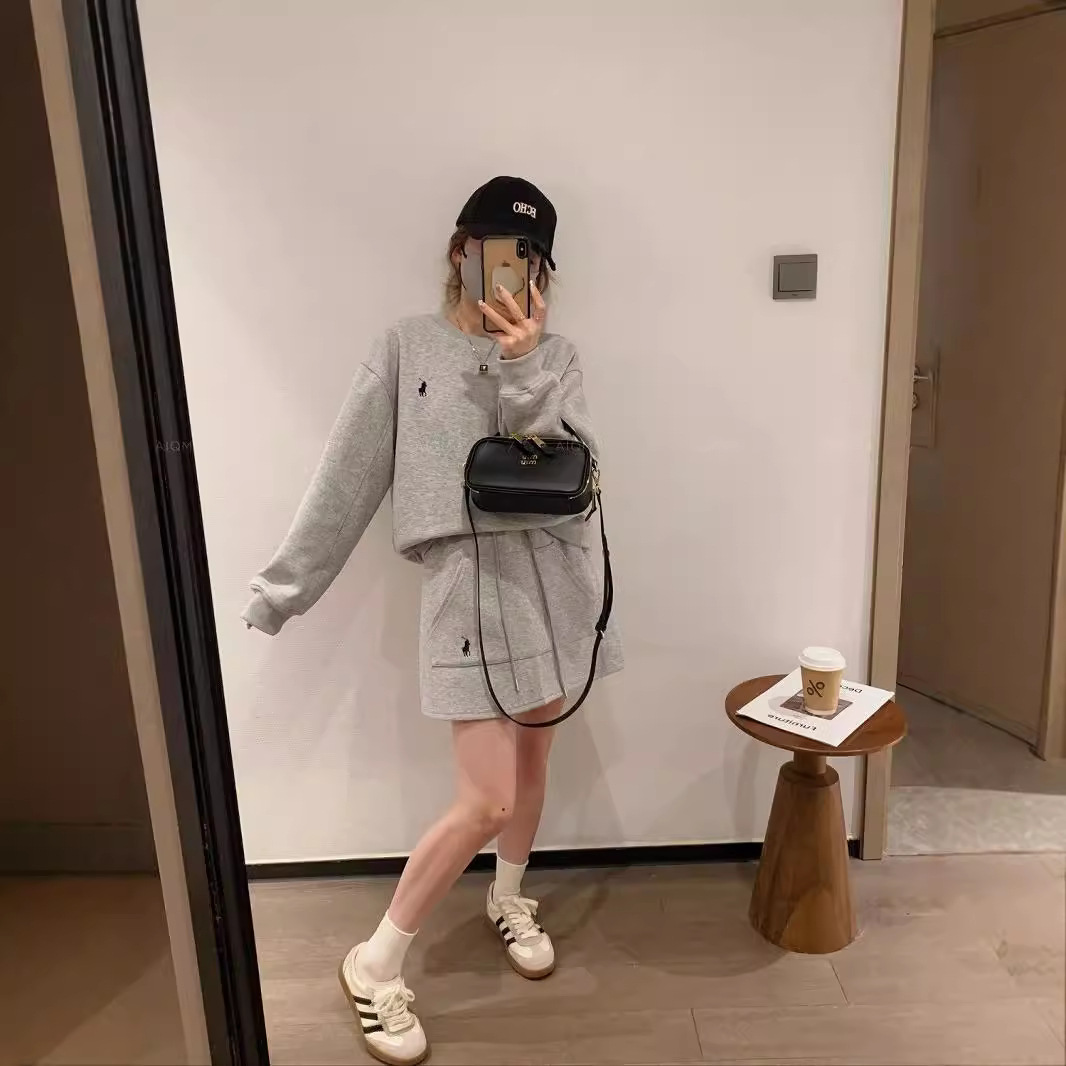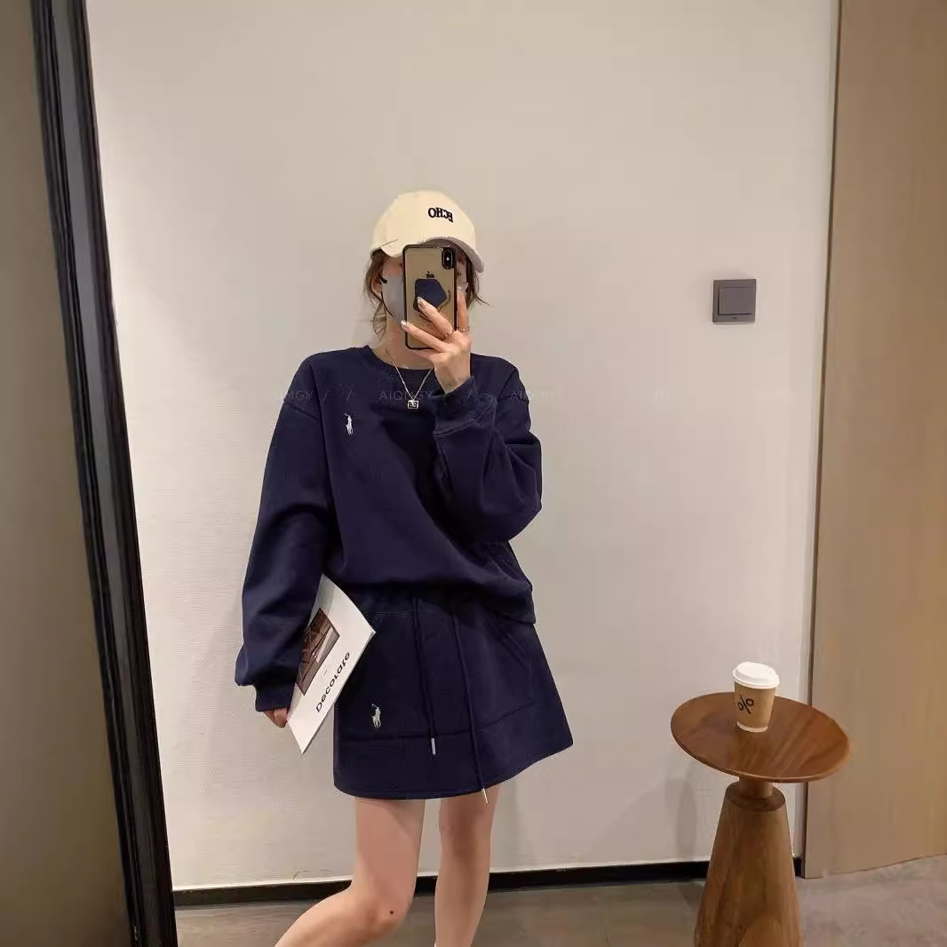 크루 넥 자수 스웨트 힙합 스커트 투피스 세트 여성의 봄과 가을 새로운 패션 레저 스포츠 대외 무역 여성 세트 트렌디스토어 가기