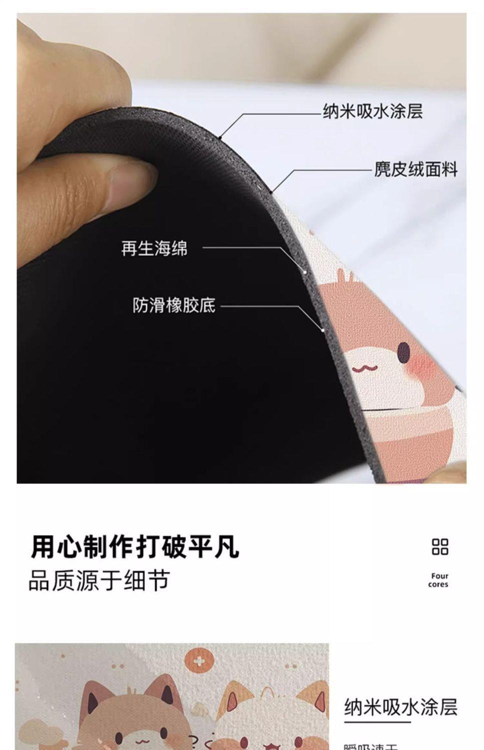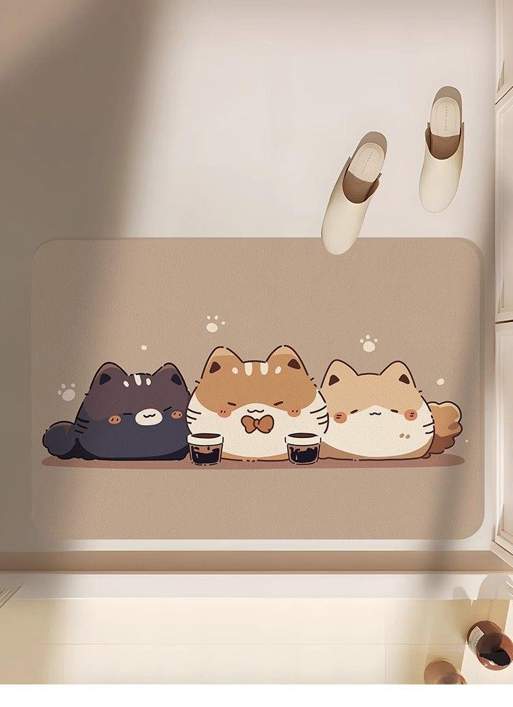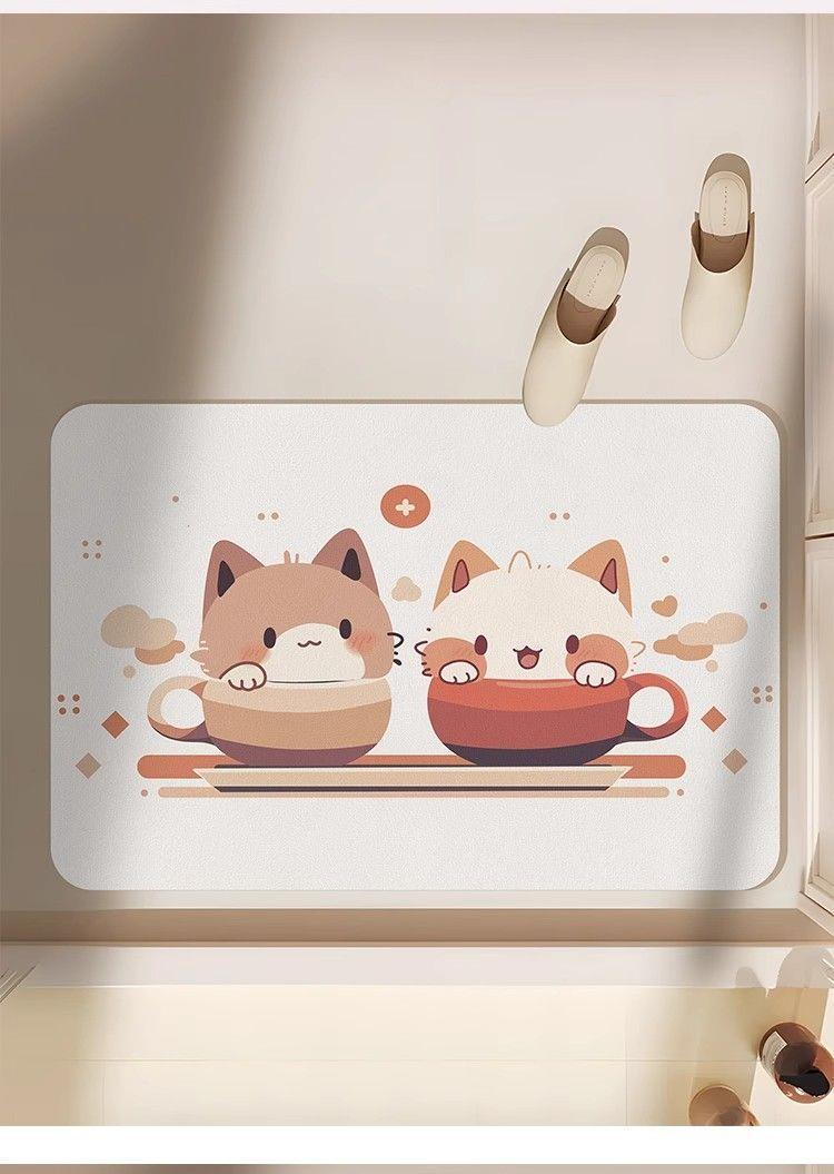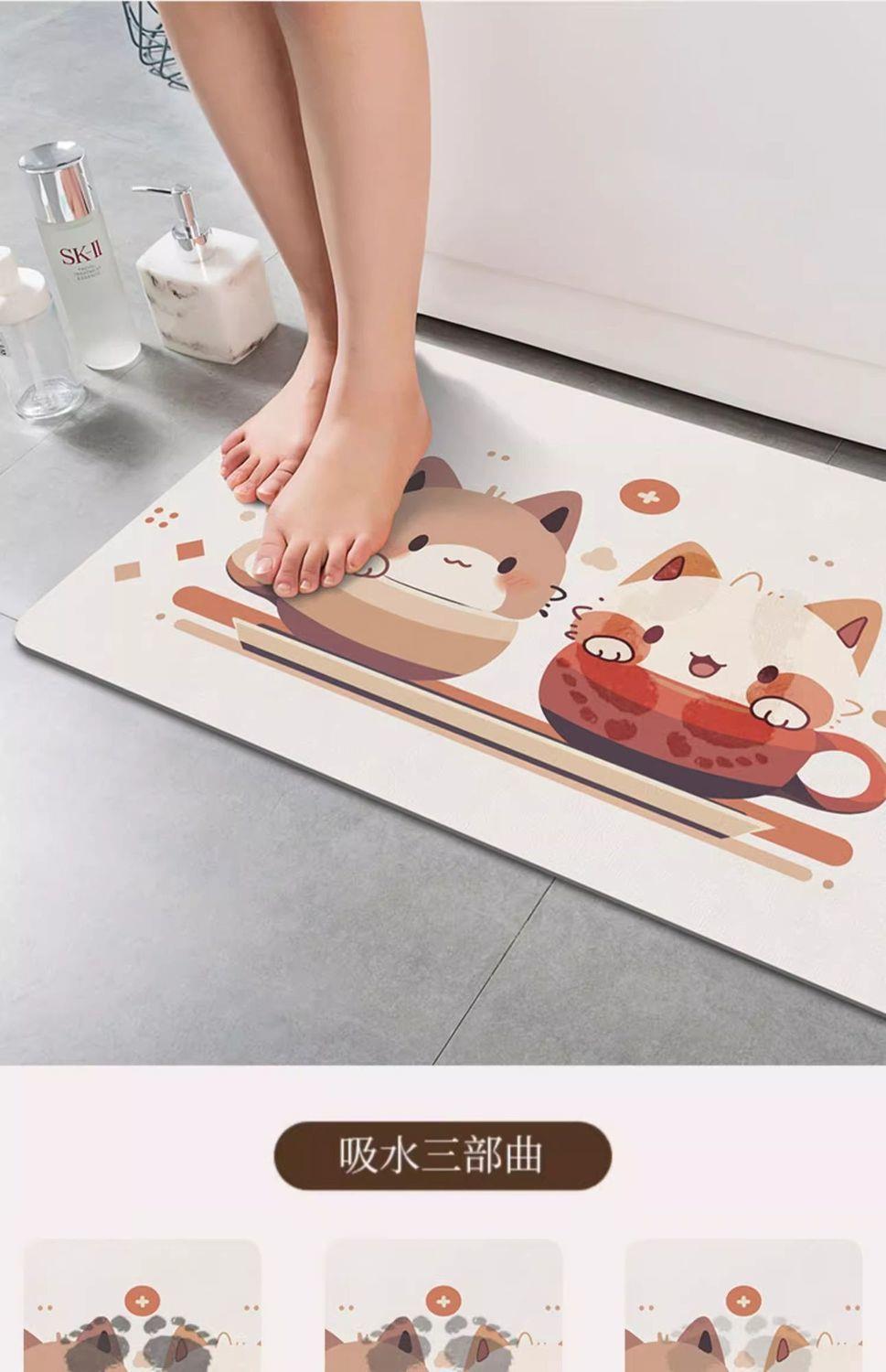卡通猫猫硅藻泥浴室吸水地垫速干卫生间门口防滑脚垫厕所可爱地毯