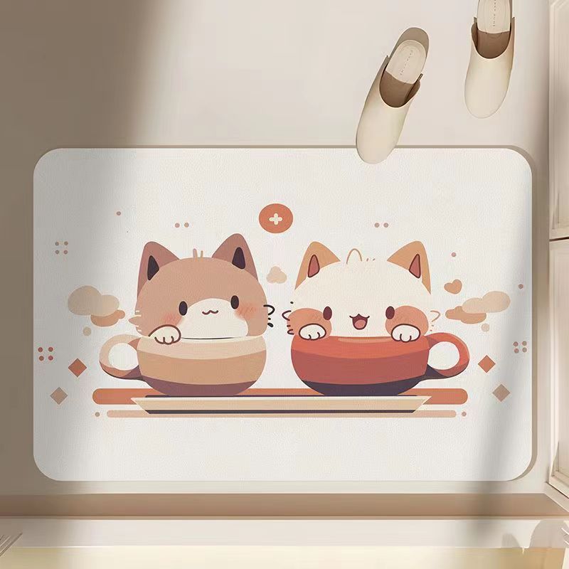 Daifa 만화 Diatom 진흙 욕실 흡수성 바닥 매트 빠른 건조 화장실 문 미끄럼 방지 발 매트 가정용 화장실 카펫스토어 가기
