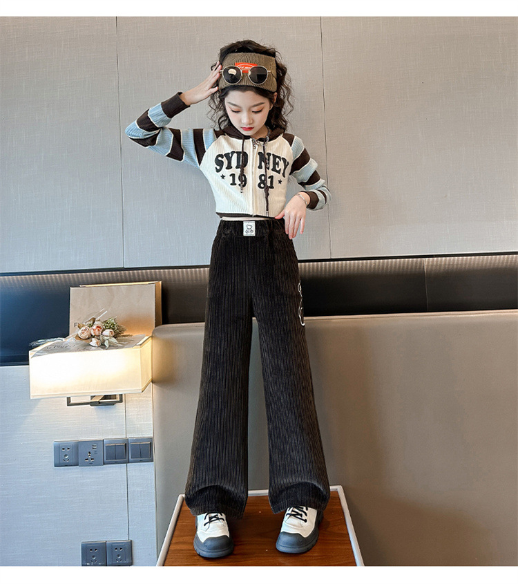 소녀 바지 2024 새로운 가을과 겨울 어린이 캐주얼 만화 컵스 외부 바지 어린이 기모 넓은 다리 바지스토어 가기