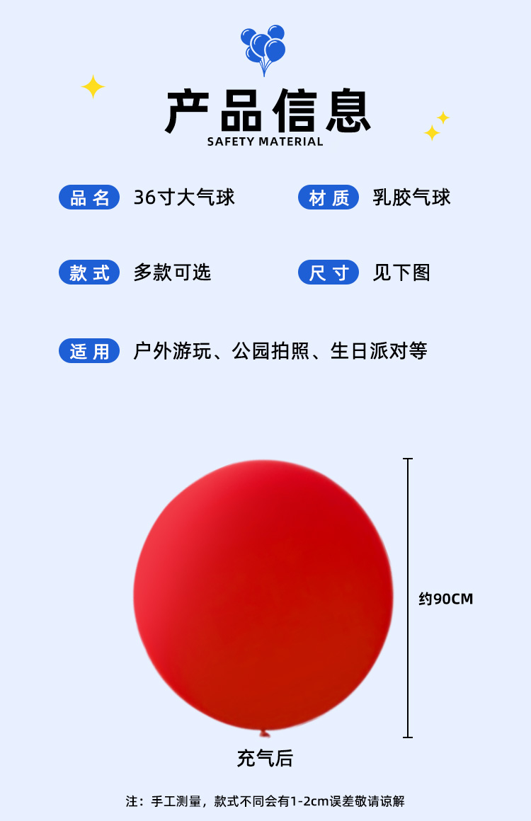 야외 대형 풍선 두껍게 36 인치 방폭 어린이 공원 잔디 라텍스 대형 풍선 장난감 마구간 도매스토어 가기