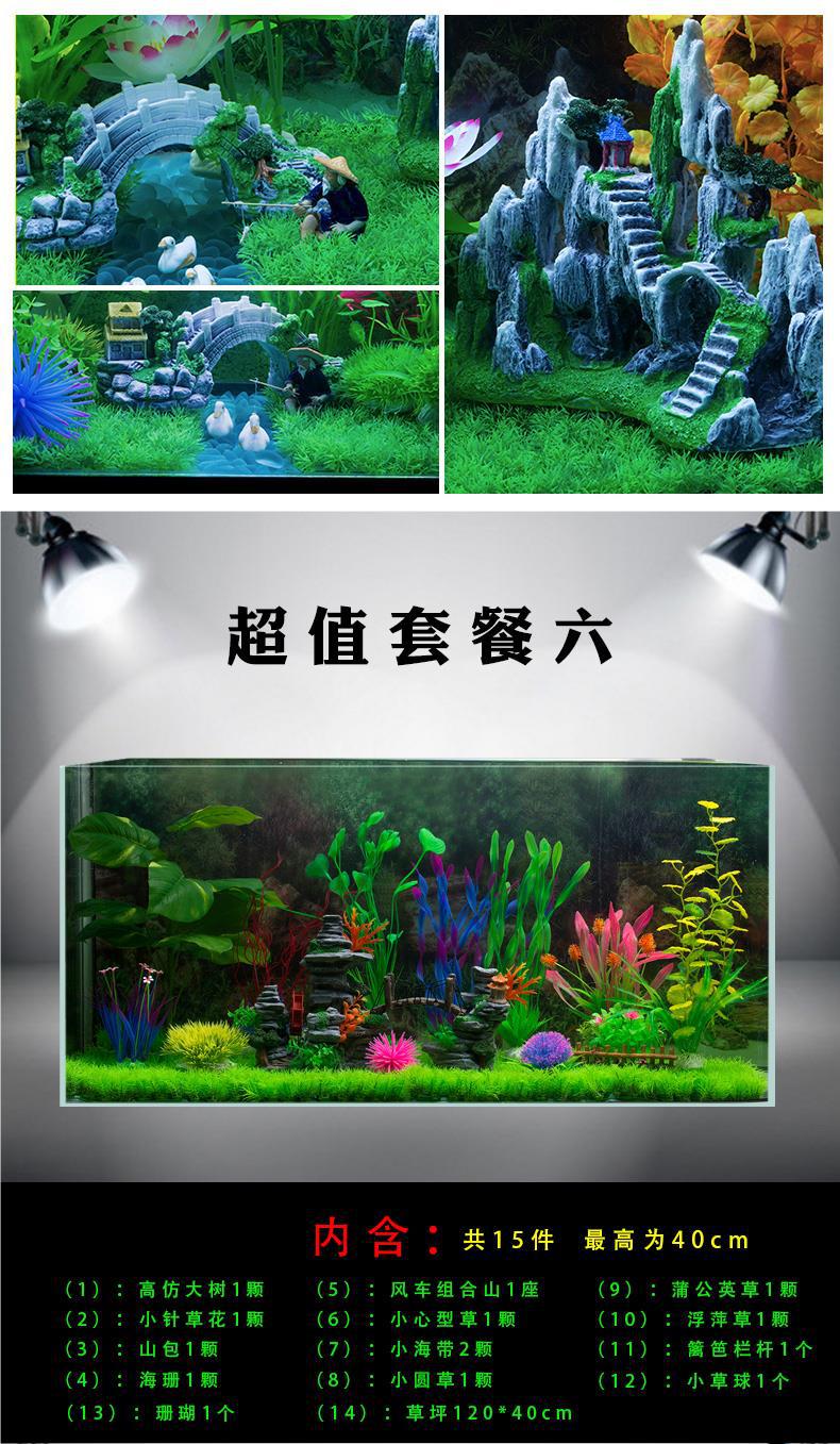 대형 수조 장식 및 조경 패키지, 수생 식물 수조 잔디 수족관 조경 패키지, 석가석 장식품스토어 가기