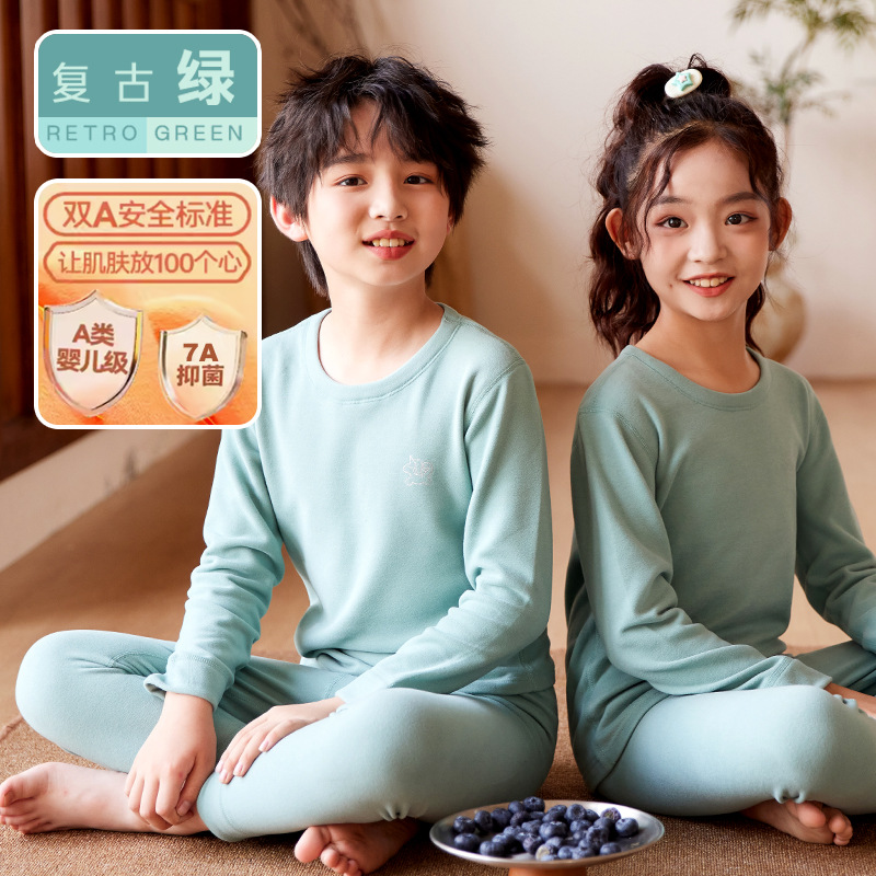 어린이 열 속옷 7A 항균 다운 실크 세트 가을과 겨울 아기의 중간 두꺼운 샌딩 가을 옷과 바지 소년 소녀스토어 가기