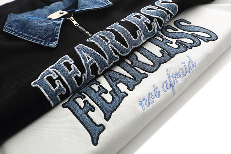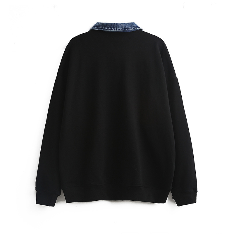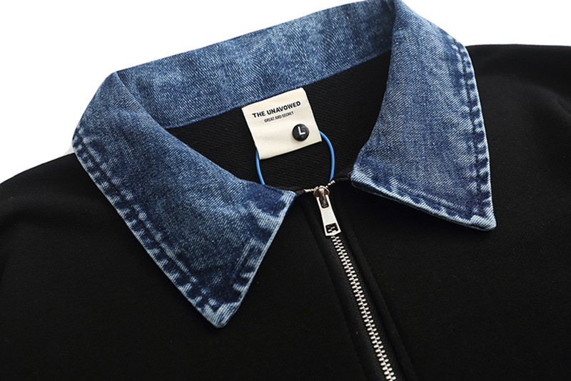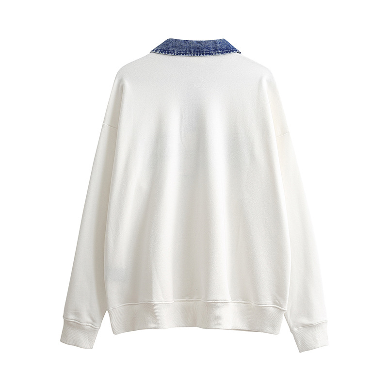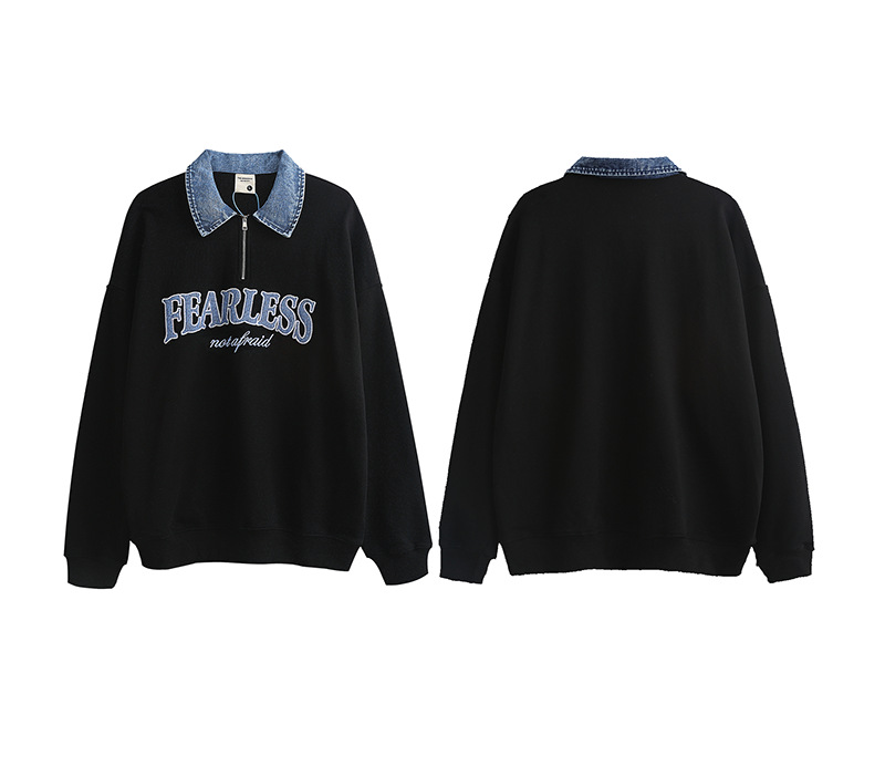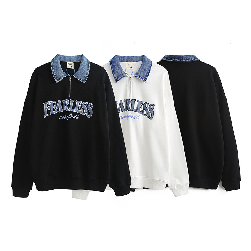 2024 새로운 미국 스타일 빈티지 폴로 데님 칼라 하프 지프 땀 남녀 대학 스타일 루즈 기모 탑
