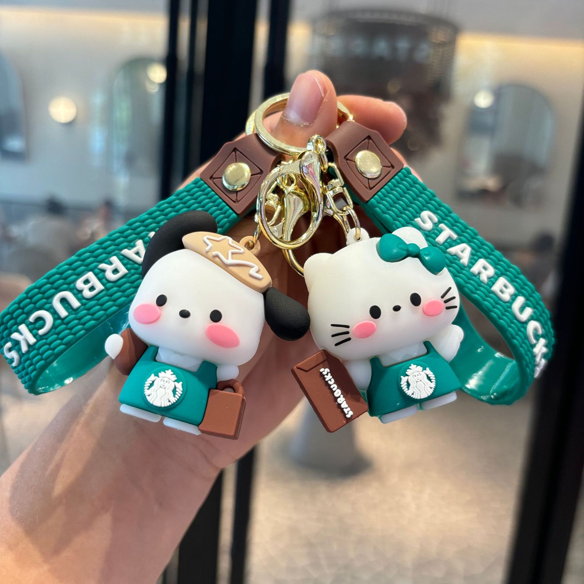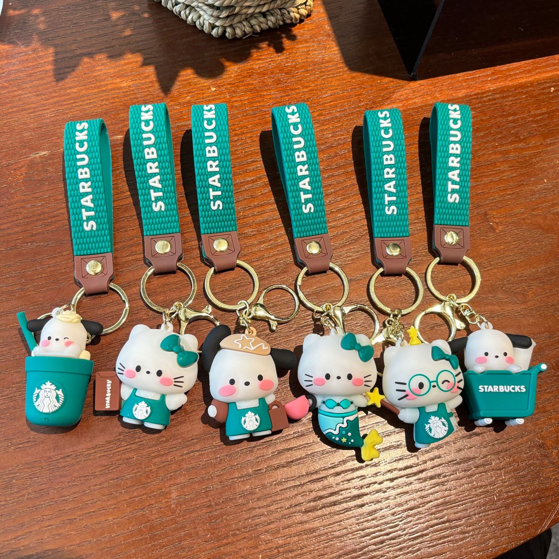 산리오 스타 벅스 키 체인 kt 고양이 파르 치아 개 인형 펜던트 잡기 아기 기계 작은 선물 액세서리 도매스토어 가기