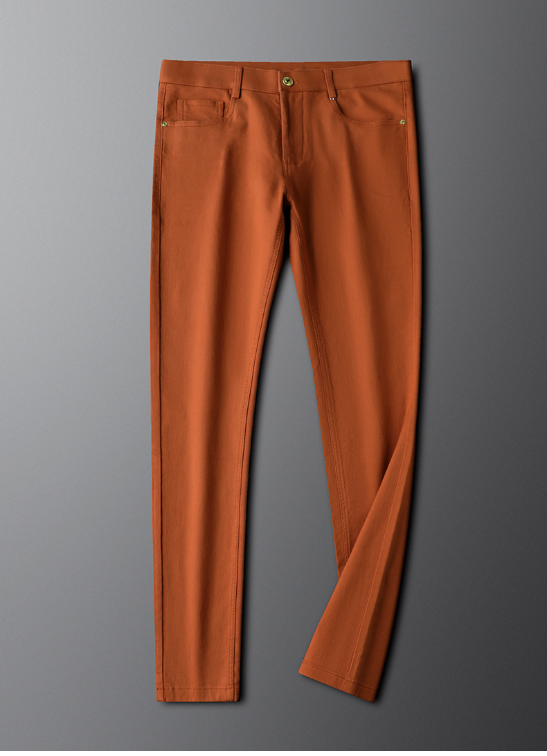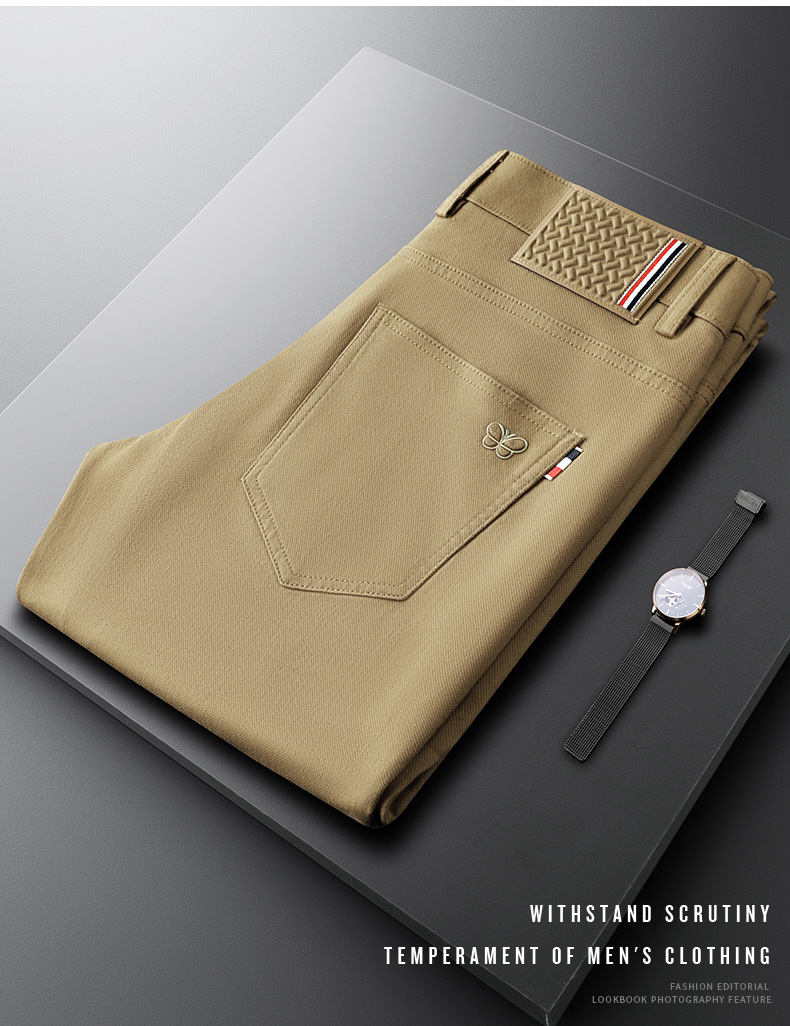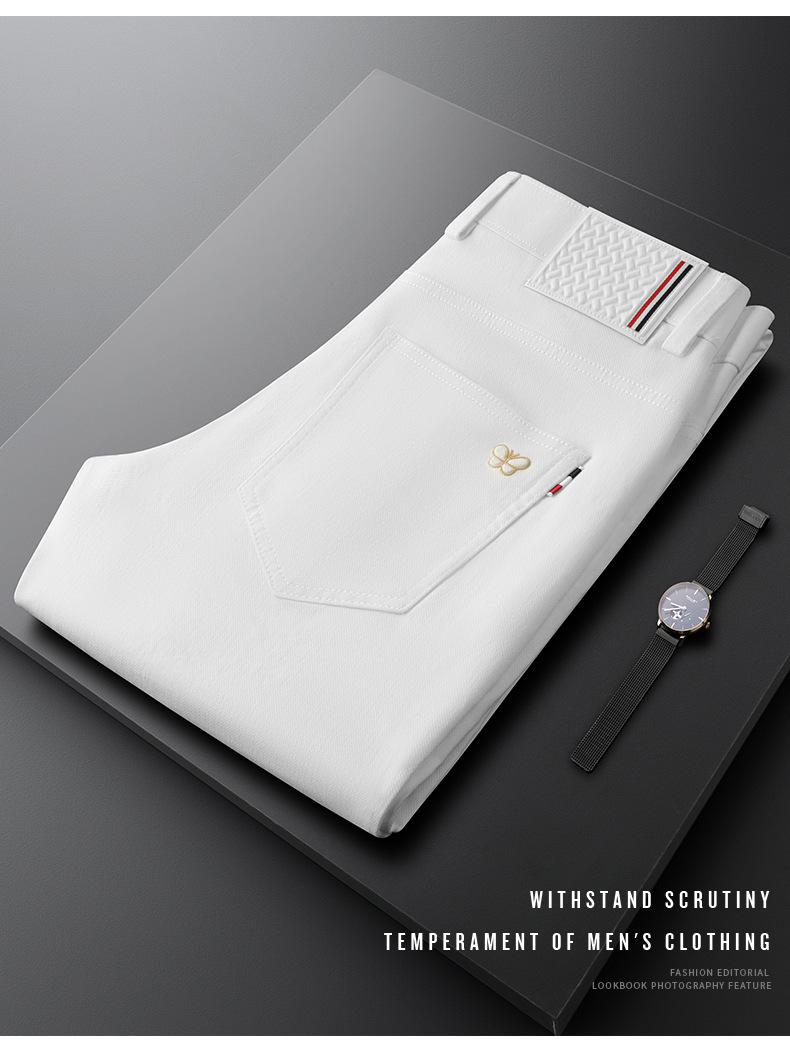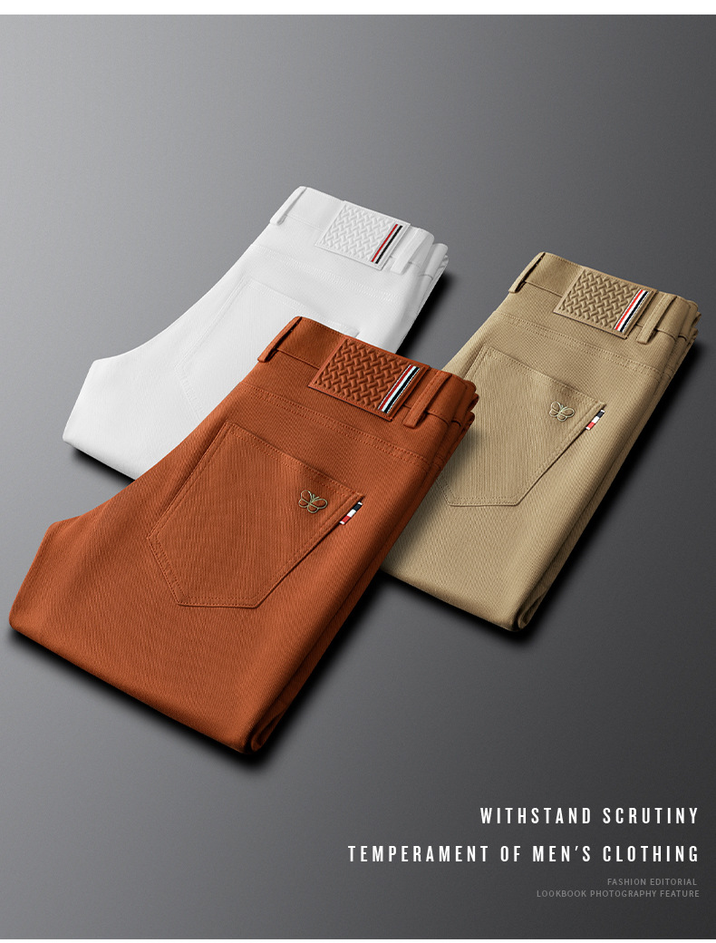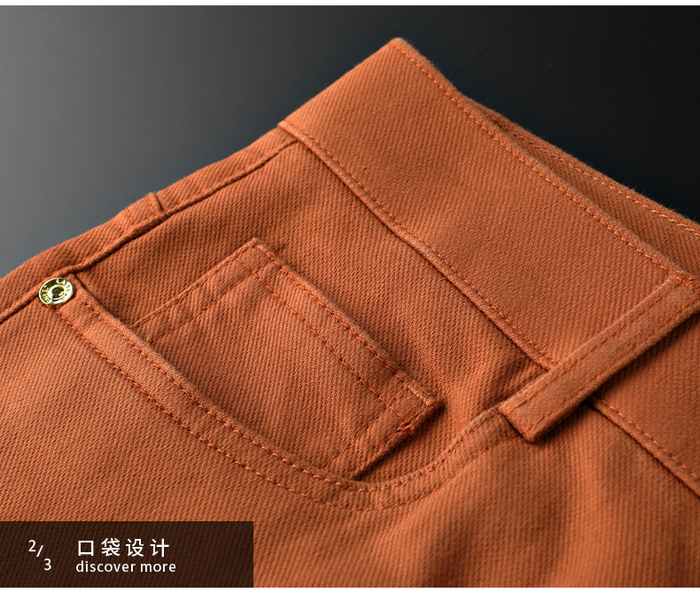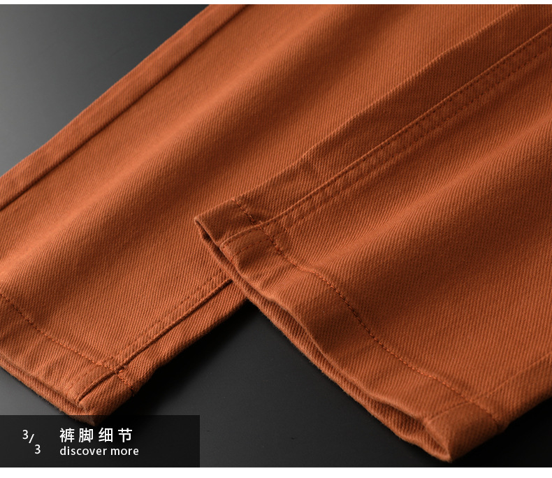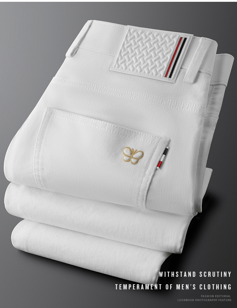 가벼운 고급 벽돌 빨간 데님 바지 남자의 슬림 핏 작은 스트레이트 바지 가을과 겨울 남자의 나비 양각 캐주얼 비즈니스 바지스토어 가기