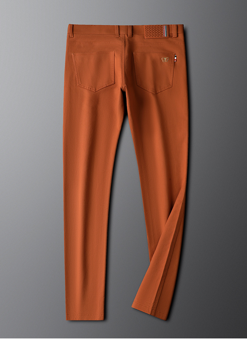 가벼운 고급 벽돌 빨간 데님 바지 남자의 슬림 핏 작은 스트레이트 바지 가을과 겨울 남자의 나비 양각 캐주얼 비즈니스 바지