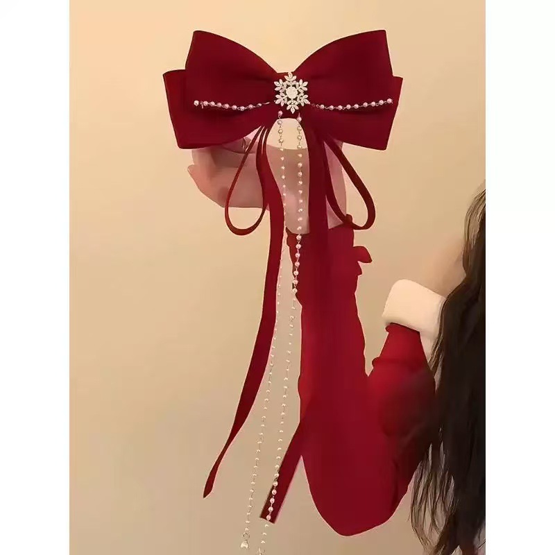 빨간 활 머리 장식 신부 토스트 원피스 저녁 행사 헤어 액세서리 약혼 웨딩 헤어핀 간단한 분위기 고급 여성스토어 가기