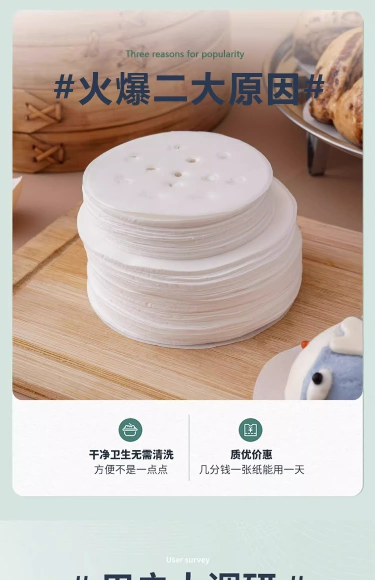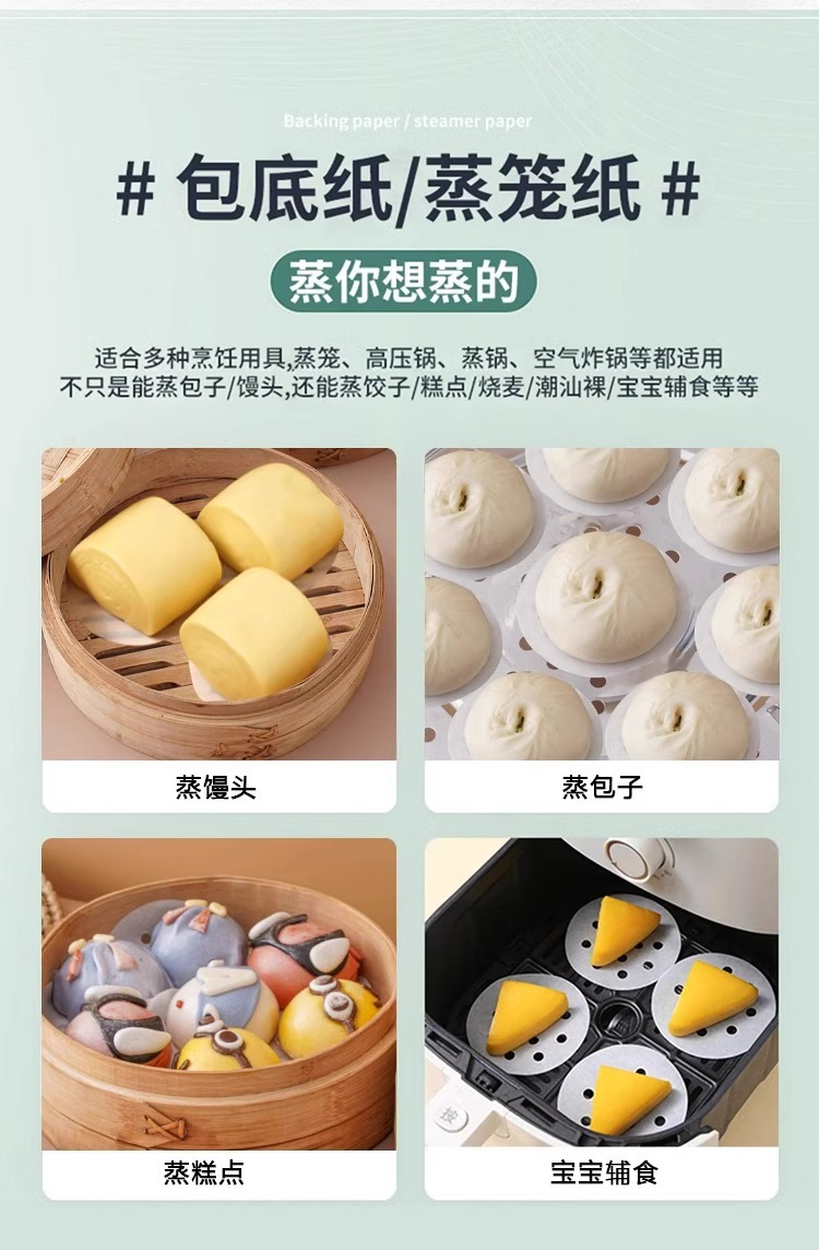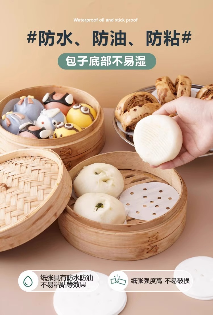 새로운 기선 종이 패드 종이 종이 식품 등급 찐 분 찐 분 특수 일회용 비 스틱 냄비 찐 분 패드 천