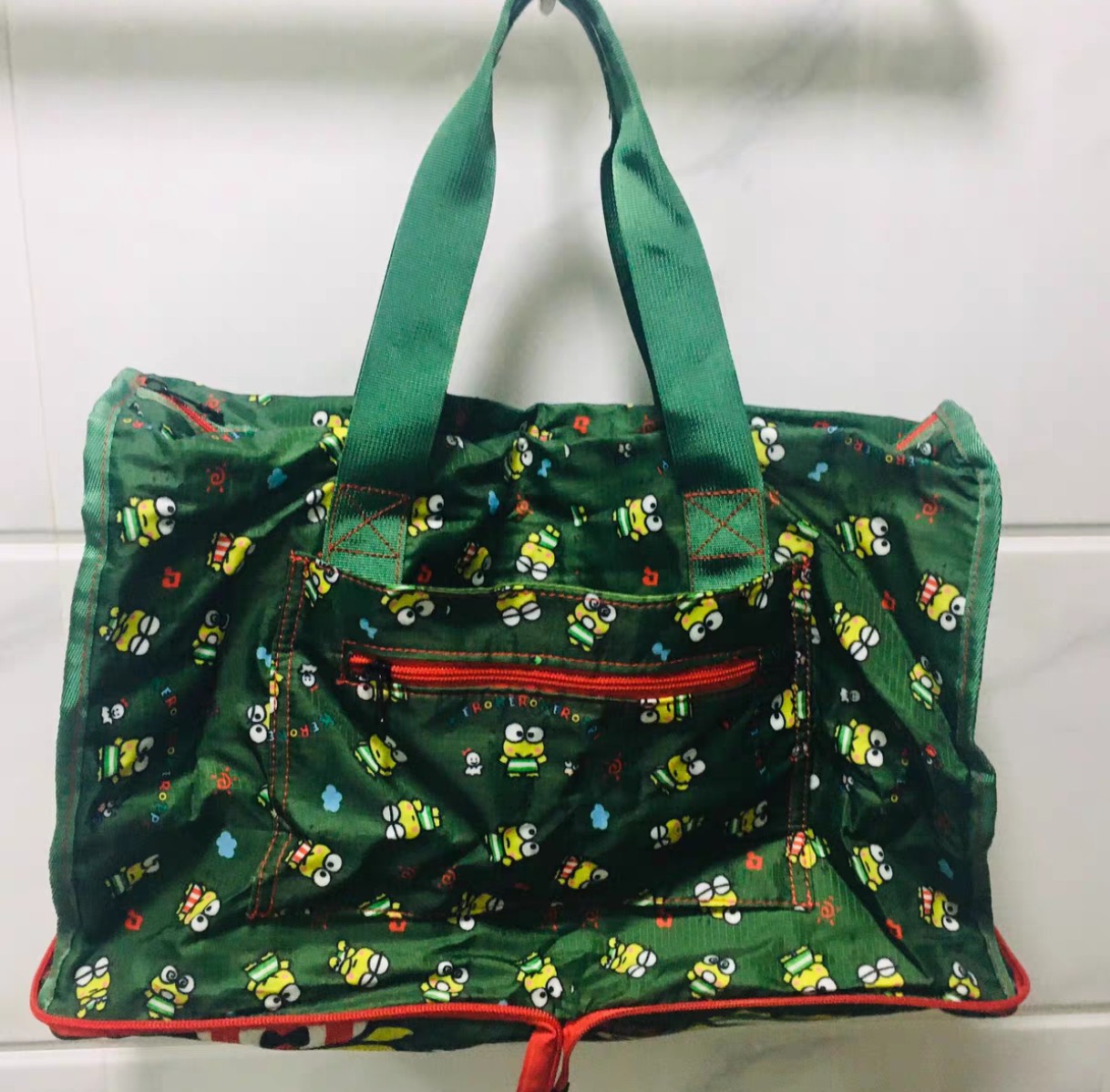일본 큰 눈 개구리 녹색 귀여운 인쇄 개구리 개구리 패턴 만화 여행 가방 대용량 접이식 저장 가방 휴대용스토어 가기