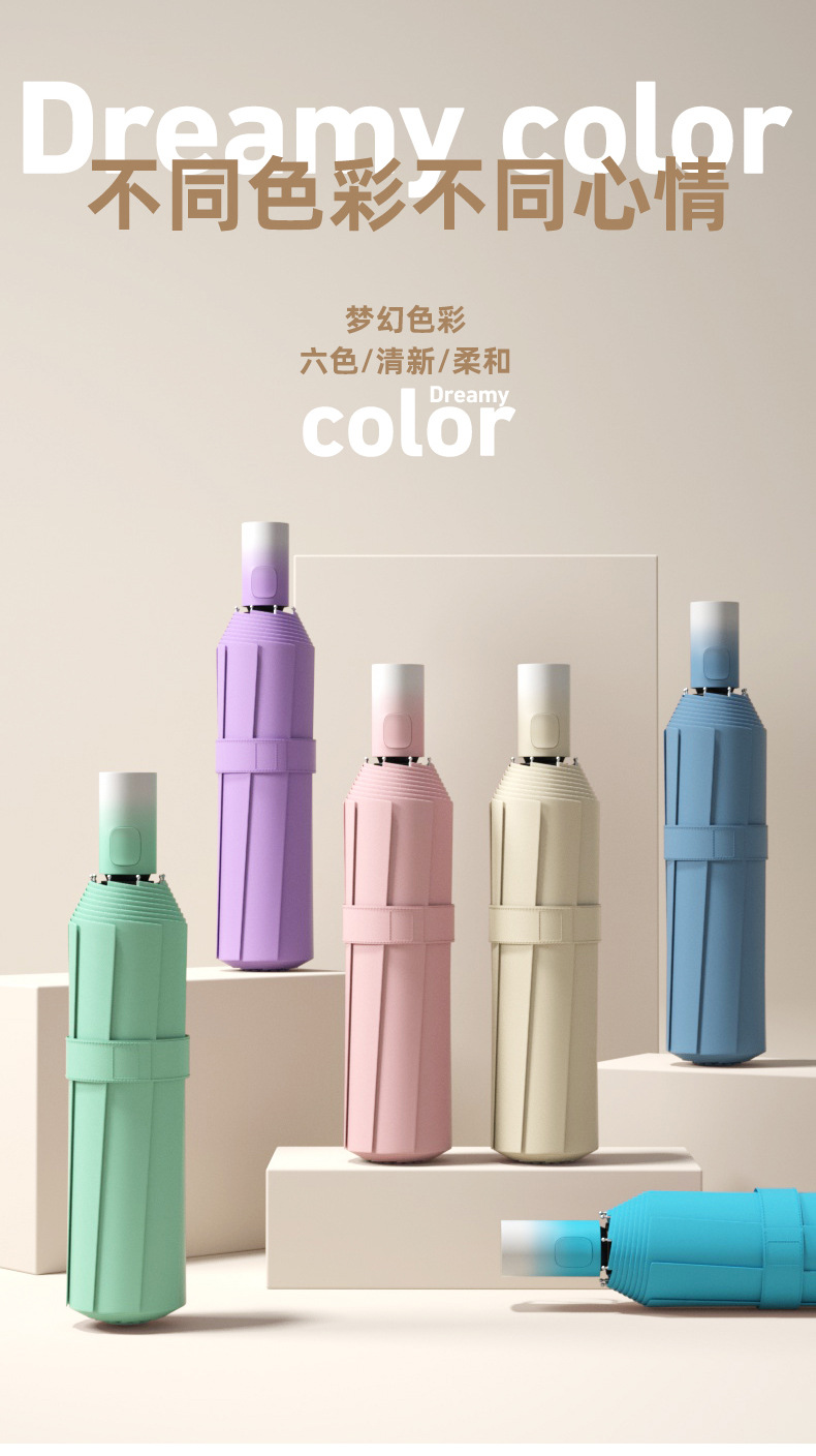 그라데이션 자동 8단 블랙글로스 자외선 차단 양산 겸용 우산, 자외선 차단, 비 오는 날에도 사용 가능, 학생용 이중 우산, 태양 우산