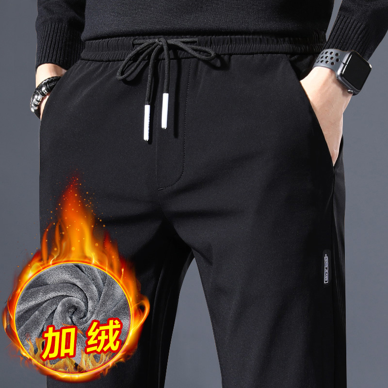 남자 캐주얼 바지 가을과 겨울 양털 달린 바지 스트레이트-다리 느슨한 바지 외부 착용 긴 존스 중년 스포츠 바지 남자 봄