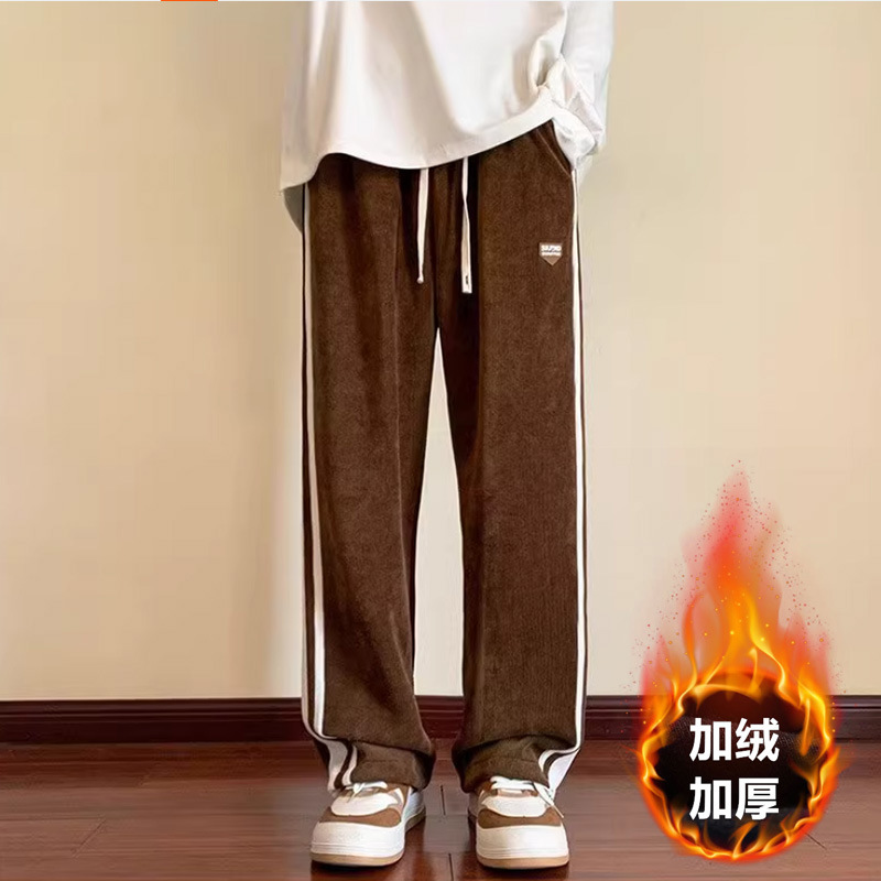 Corduroy 바지 남자의 봄과 가을 닥치는 캐주얼 바지 미국 스타일 레트로 트렌디 브랜드 와이드 레그 루즈 플러스 사이즈 스트레이트 바지