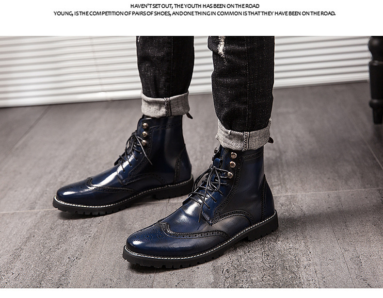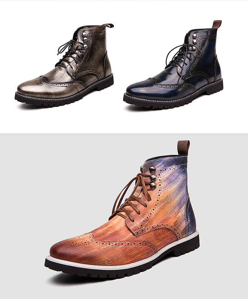 2024 새로운 가을과 겨울 패션 레트로 꽃 크로스 보더 플러스 사이즈 캐주얼 하이 탑 가죽 부츠 기관차 남성 부츠 작업복 부츠스토어 가기