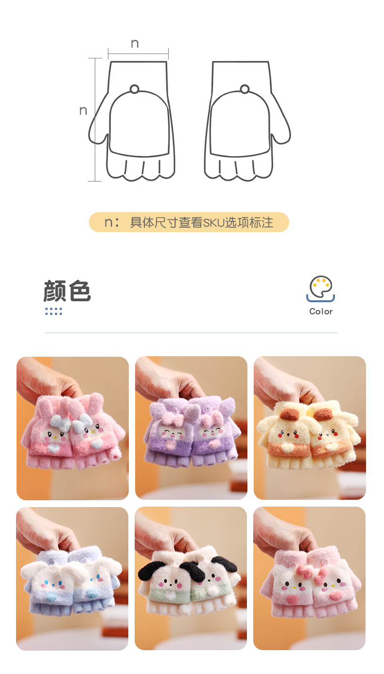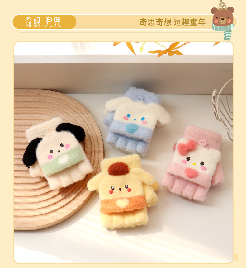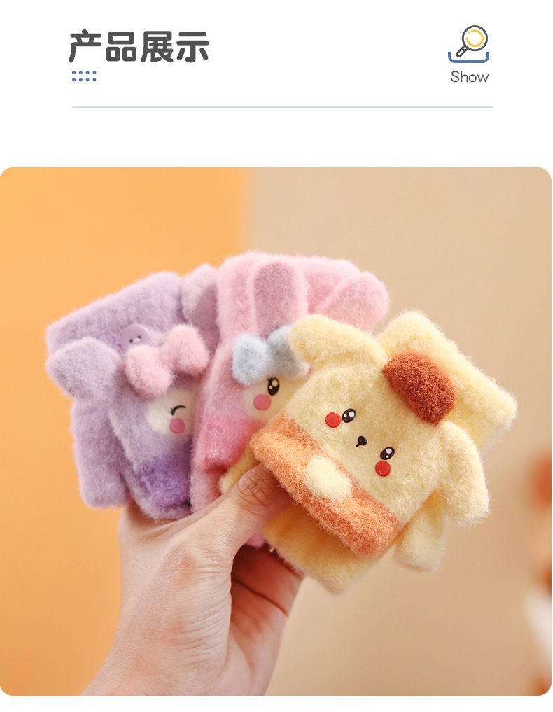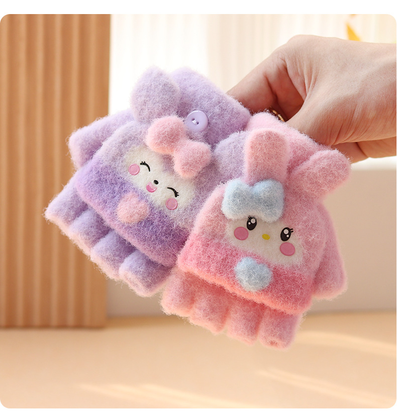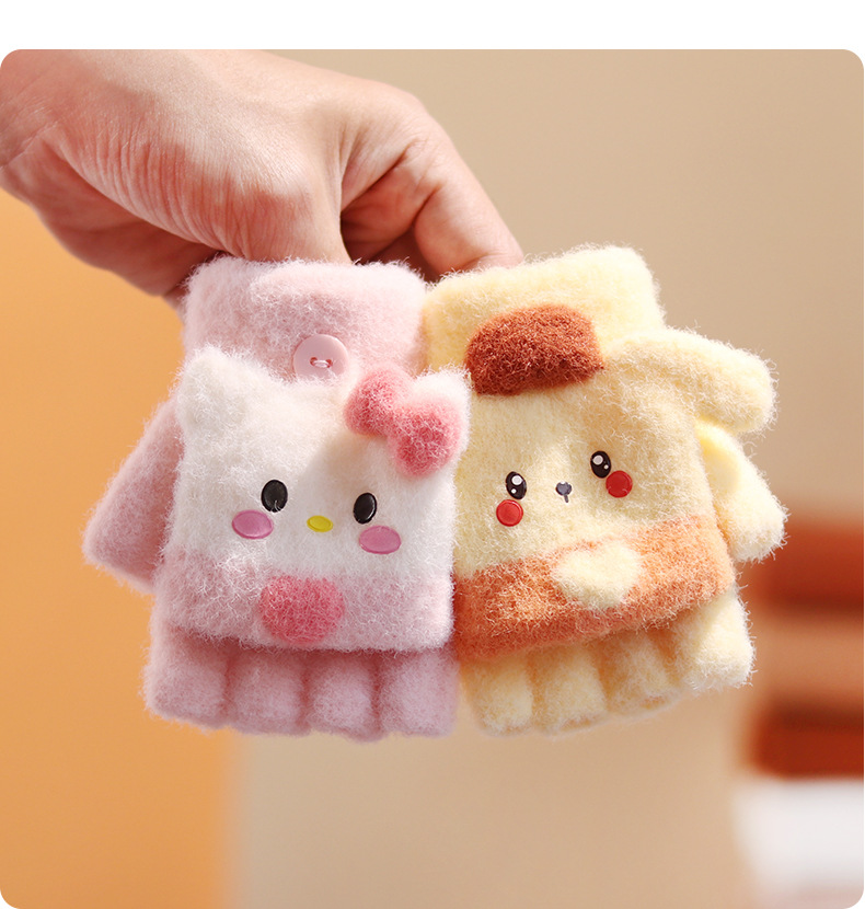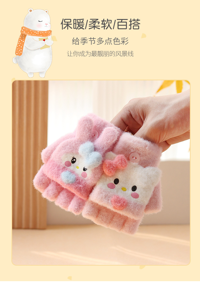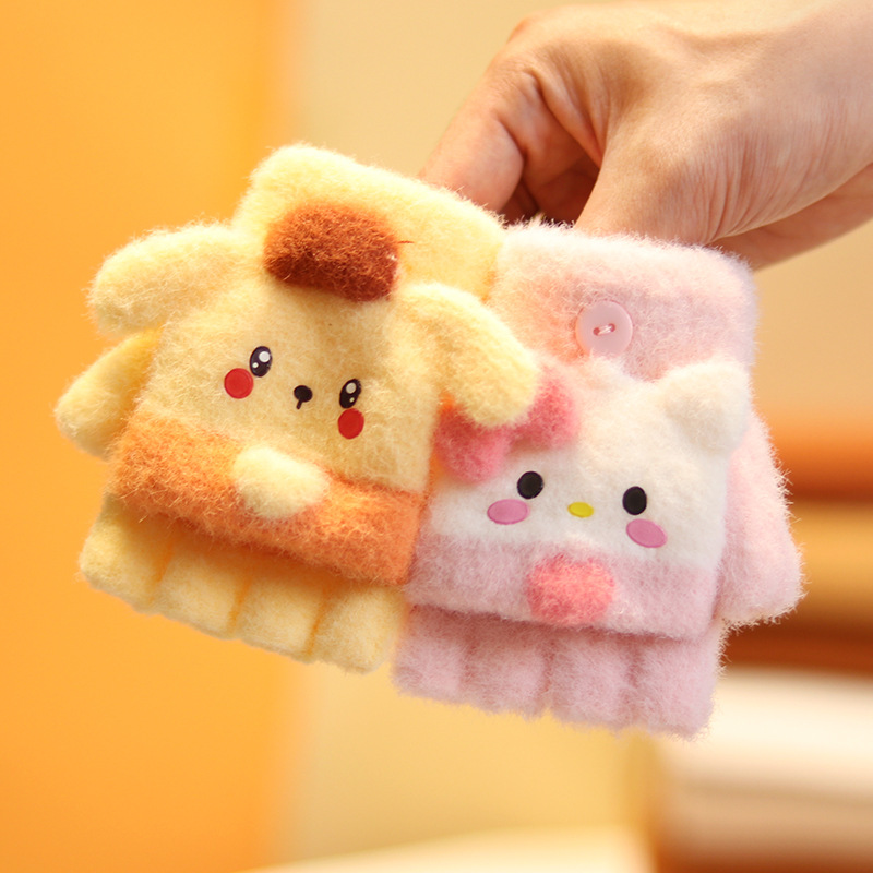 아기 장갑 플립 다섯 손가락 만화 아기 반 손가락 겨울 소녀 귀여운 소년 2-4 세 3 따뜻한 두껍게