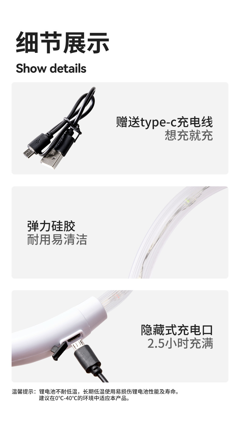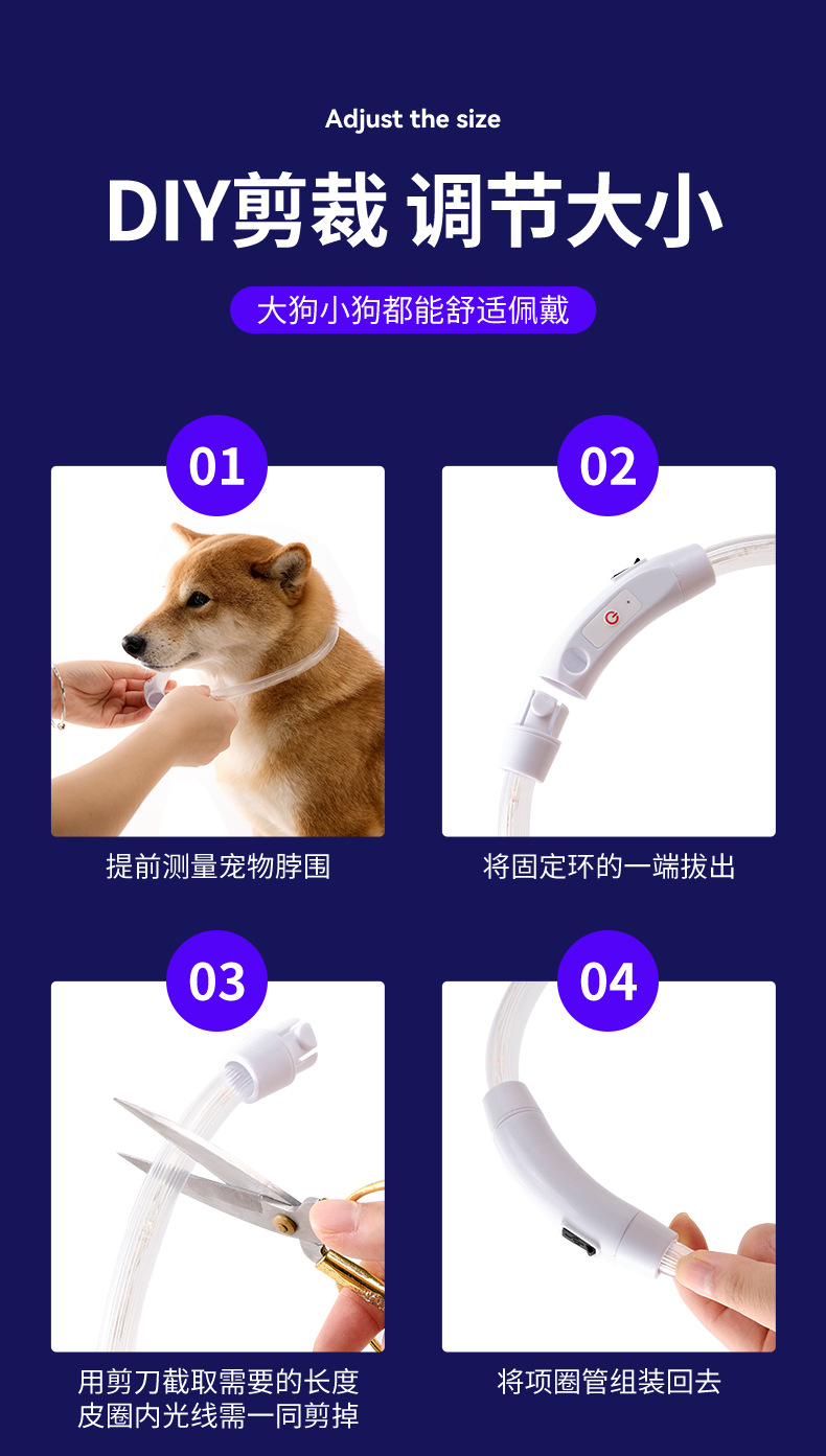 개 빛나는 칼라 밤 안티 손실 방수 USB 충전 다채로운 애완 동물 칼라는 DIY 절단 용품이 될 수 있습니다