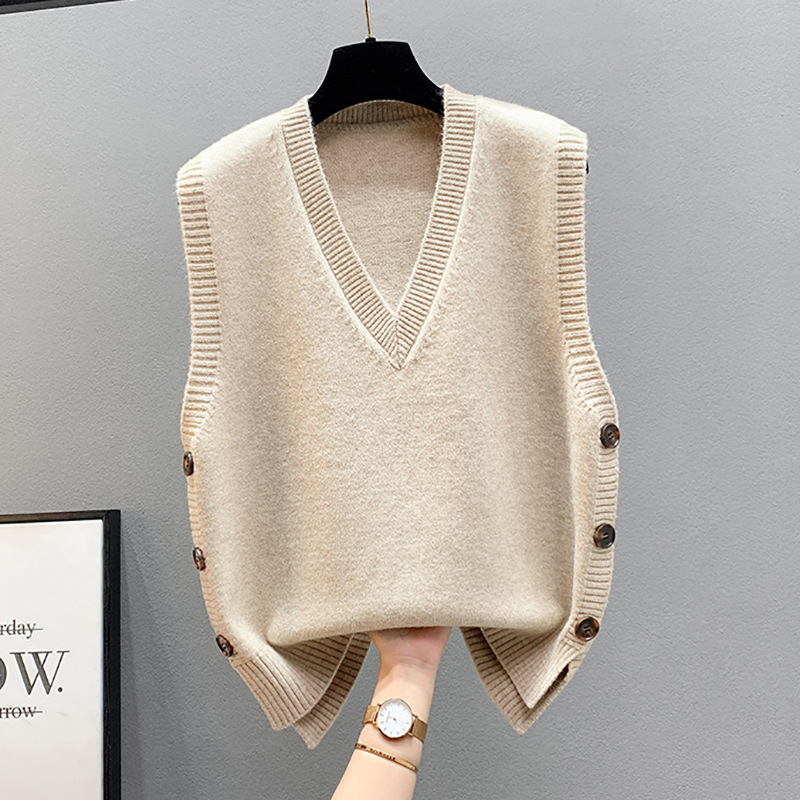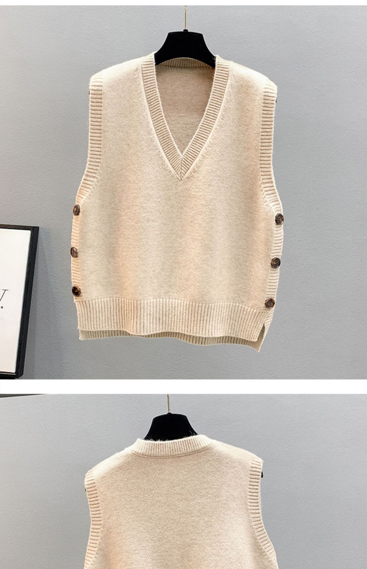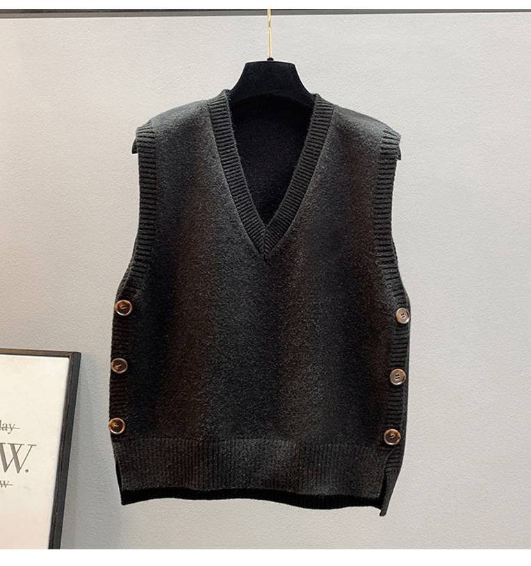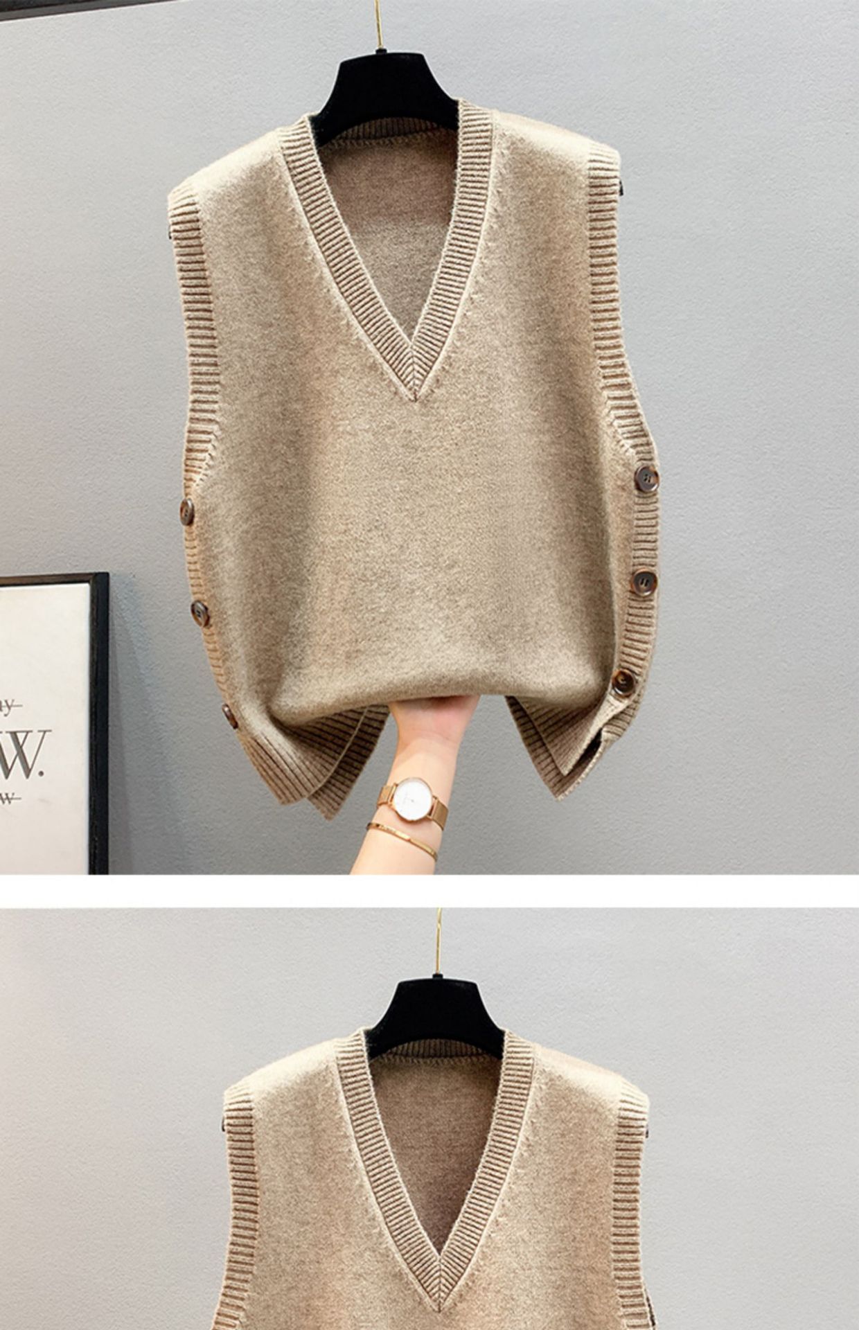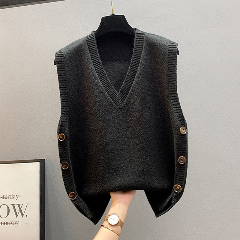사이드 브레스트 서양식 간단한 V 넥 조끼 여성 스웨터 봄과 가을 2024 새로운 서양식 느슨한 스웨터 조끼스토어 가기