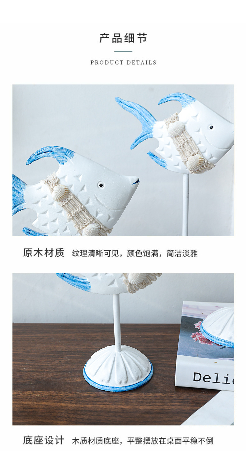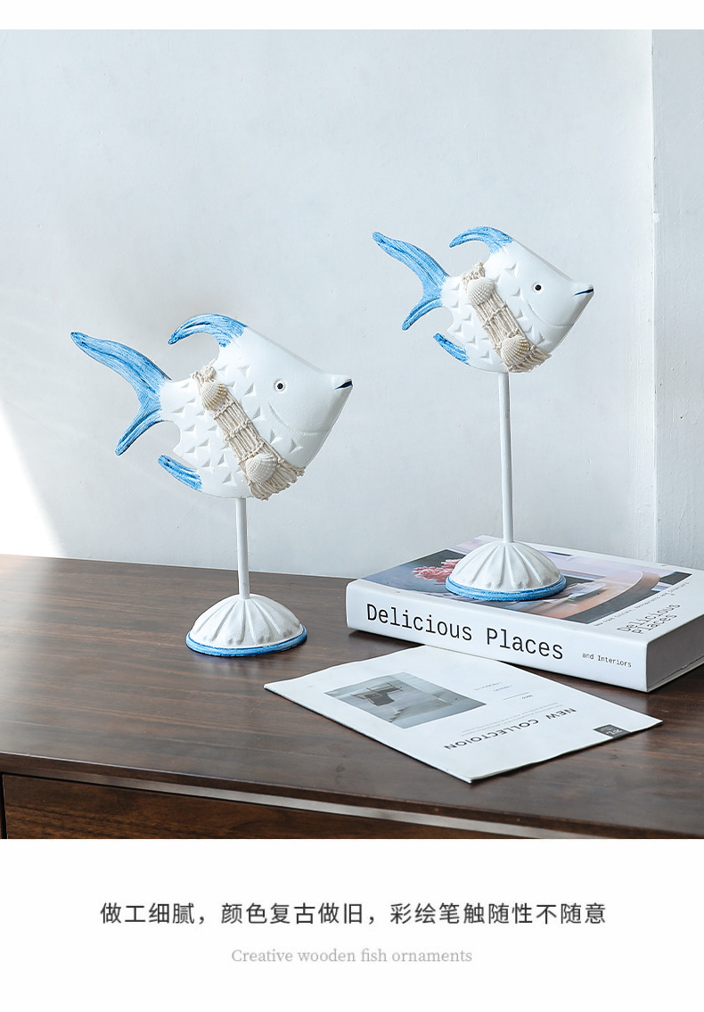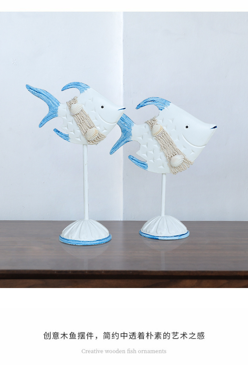 지중해 블루와 화이트 나무 물고기 장식품 홈 거실 데스크탑 현관 장식 TV 내각 연구스토어 가기