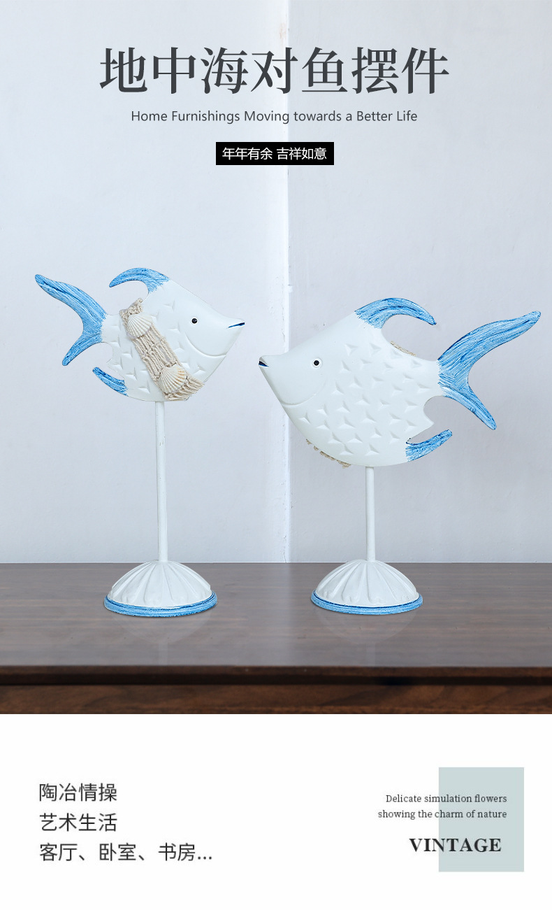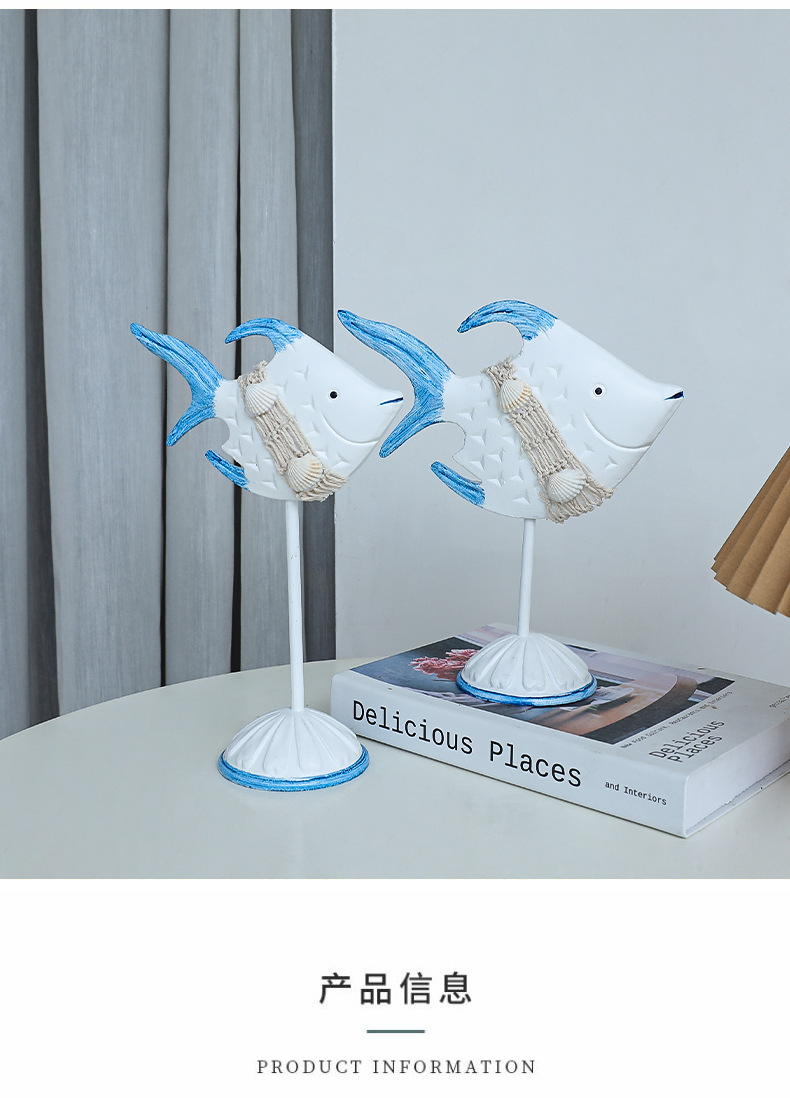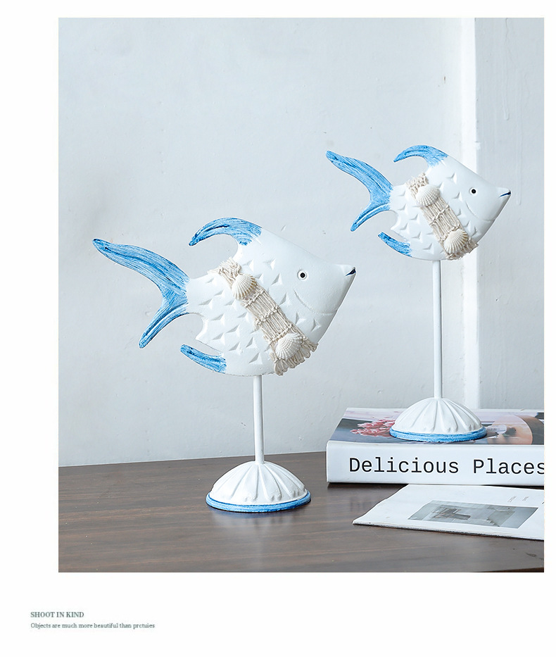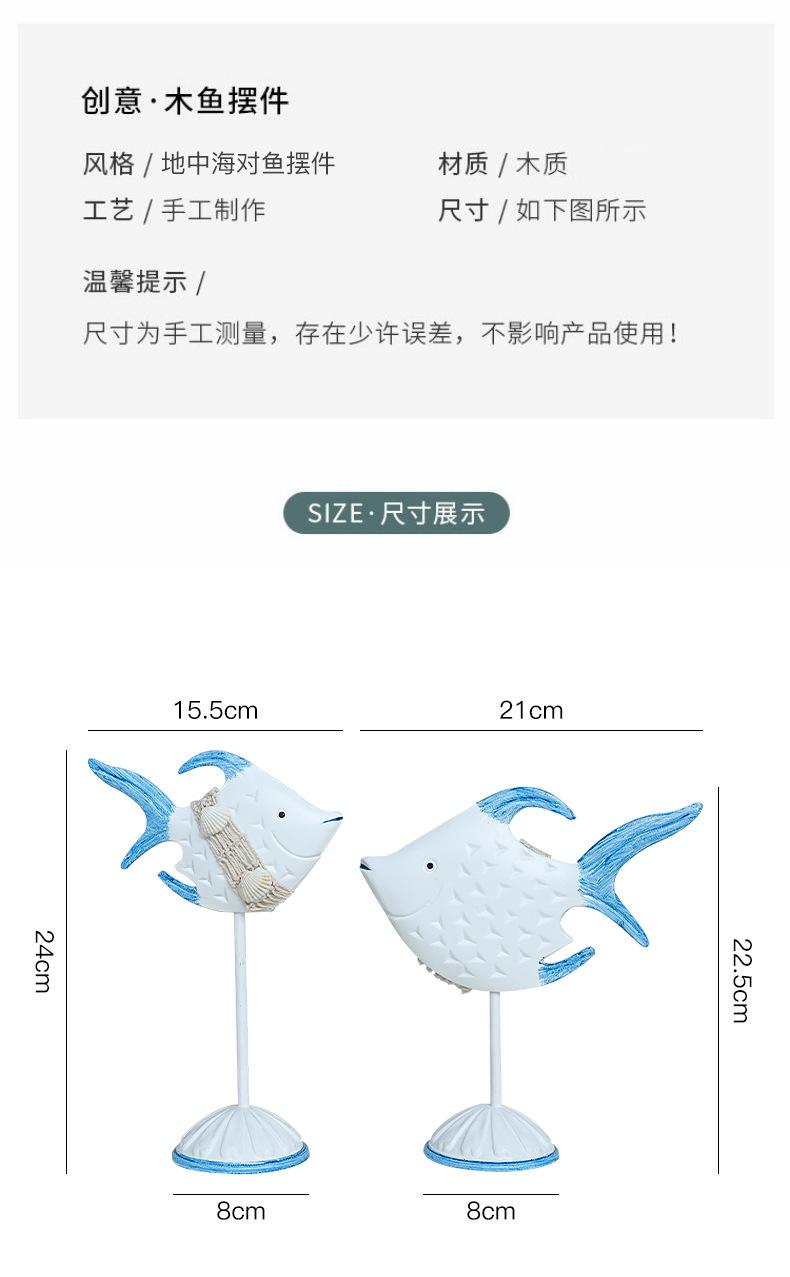지중해 블루와 화이트 나무 물고기 장식품 홈 거실 데스크탑 현관 장식 TV 내각 연구스토어 가기