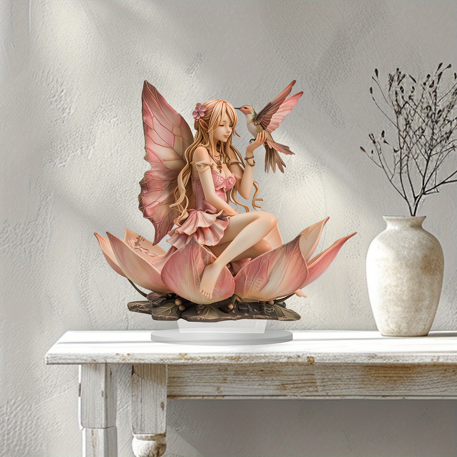 국경 간 요정과 연꽃 새 아크릴 데스크탑 장식 홈 카페 사무실 데스크탑 장식