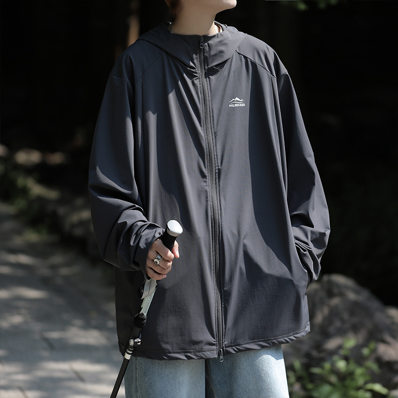 얇은 얼음 실크 선 스크린 재킷 남자 여름 산 야외 패션 브랜드 느슨한 일본 하라주쿠 후드 UV 보호 재킷