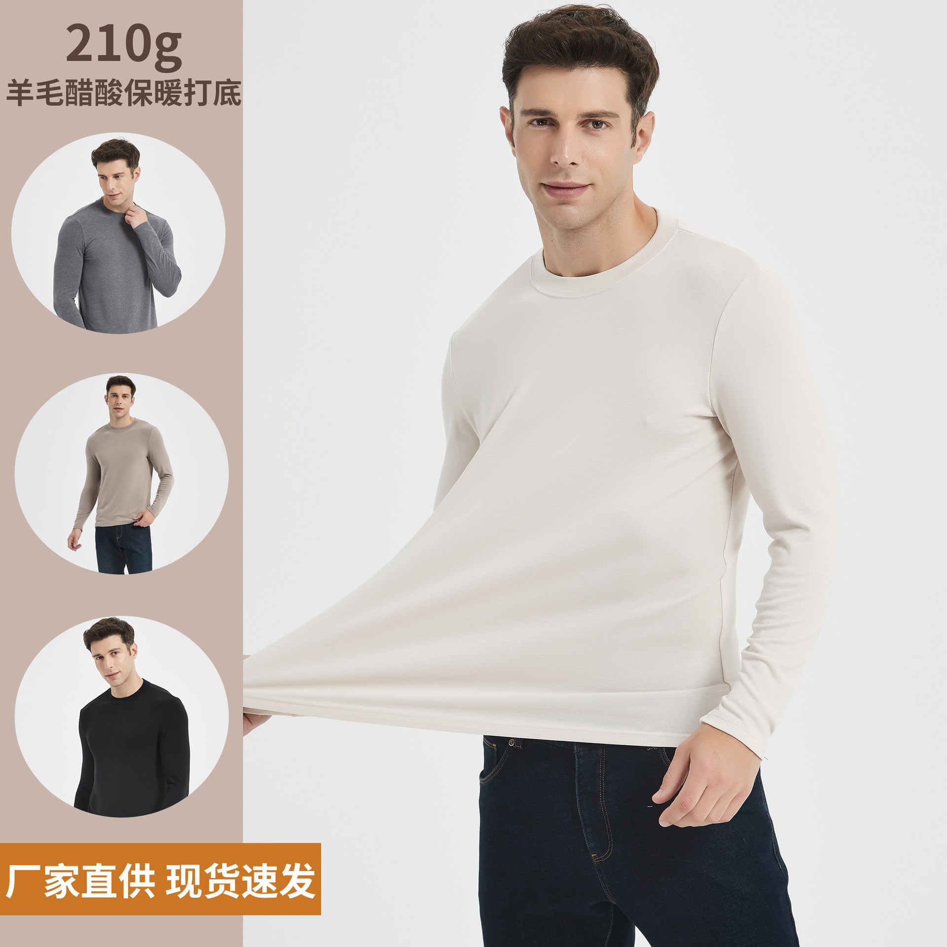 奢感羊毛衫打底衫男士精纺毛衣圆领长袖羊毛工厂保暖t恤男长袖